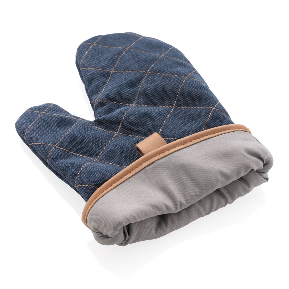 Ein unverzichtbarer Begleiter für jeden Star in der Küche ist dieser gesteppte Ofenhandschuh. Mit ausgestelltem Daumen sorgt für einen guten Griff. Die PU Details zur Dekoration. Hergestellt aus schwerem 16oz Canvas. Waschbar bei 30 Grad mit ähnlichen Farben. Verpackt in Kraft Geschenkbox.