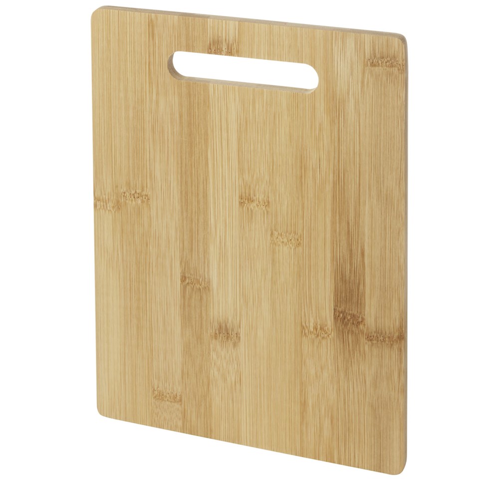 Schneidebrett aus Bambus, das nach nachhaltigen Standards bezogen und produziert wird. Das Brett kann auch zum Servieren von Tapas verwendet werden.