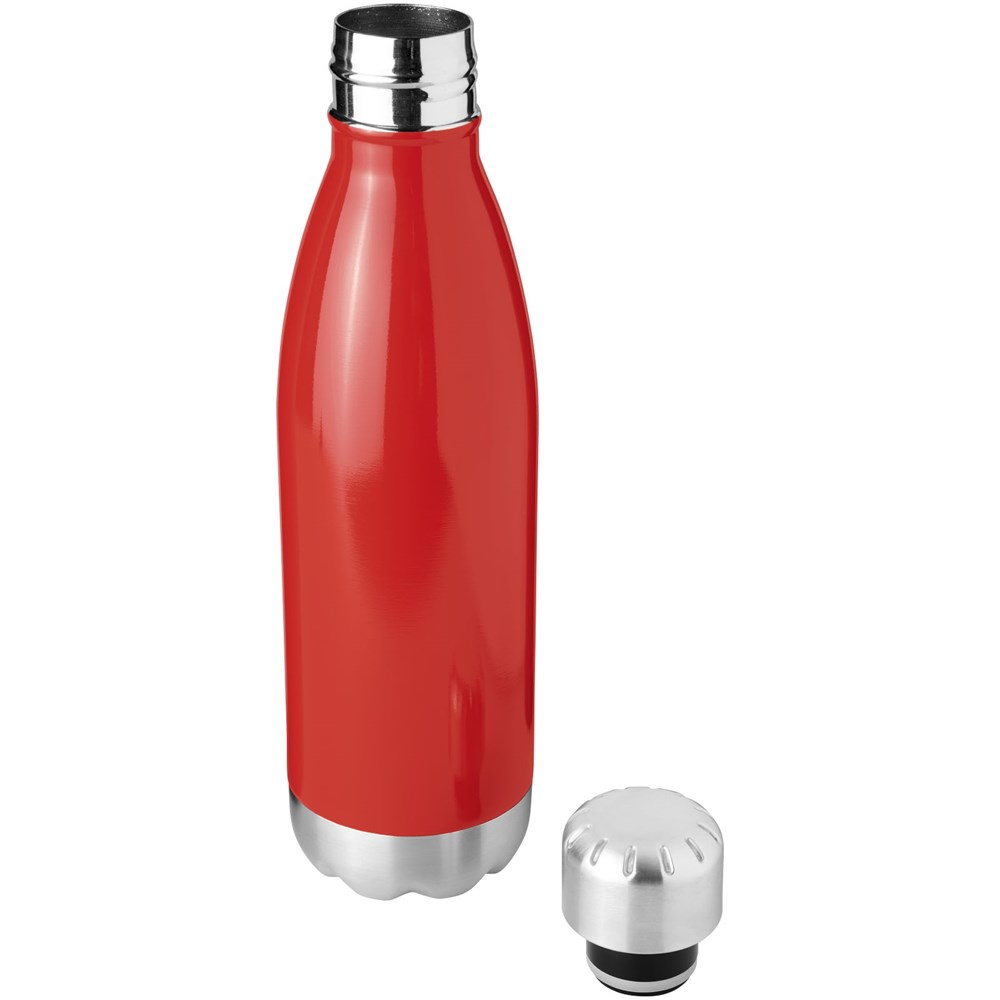 Die doppelwandige Vakuumkonstruktion aus Edelstahl ermöglicht es, dass Ihr Getränk 15 Stunden lang kalt bzw. mindestens 5 Stunden lang heiß bleibt. Die Konstruktion verhindert auch eine Kondensation an der Außenseite der Flasche. Schraubdeckel aus Edelstahl. Das Fassungsvermögen beträgt 510 ml.