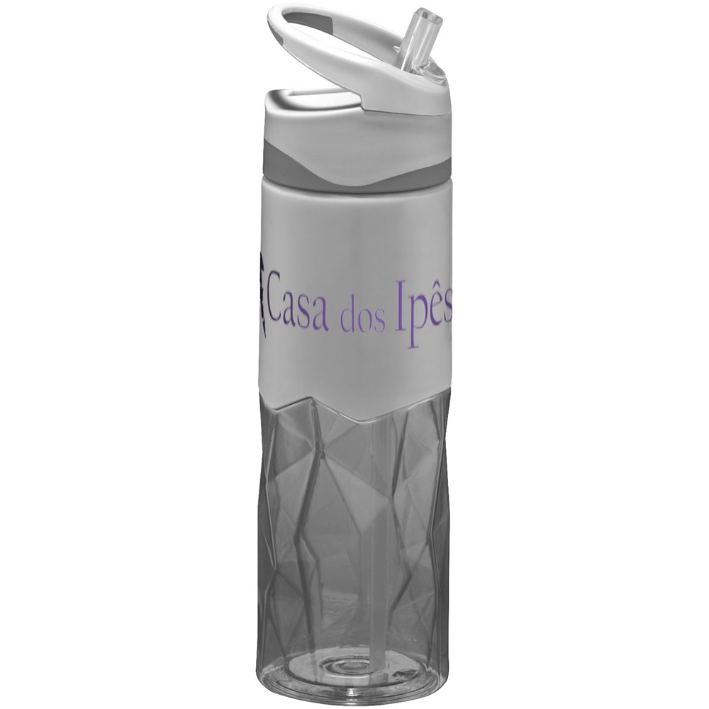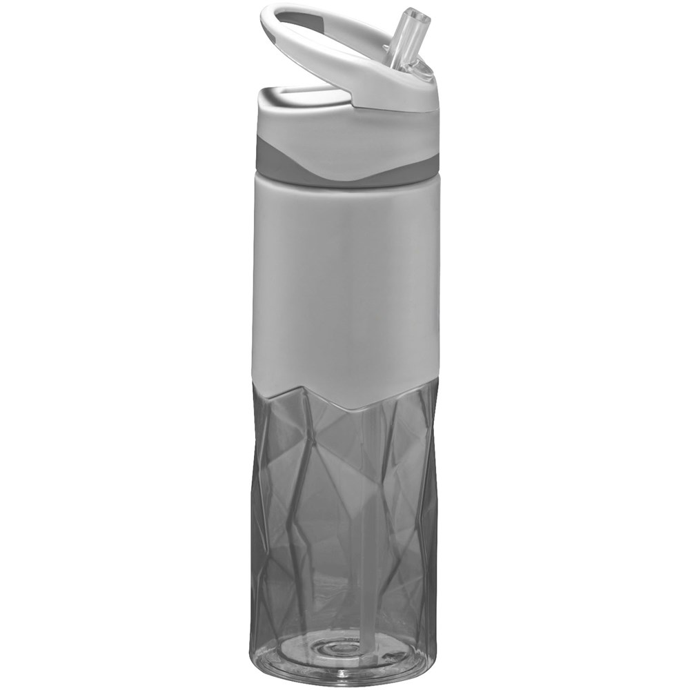 Einwandige Flasche in geometrischer Form mit weichem Griffbereich zur Logo-Anbringung. Schraubdeckel verfügt über Griff und hochklappbarem Strohhalm. Volumen 830 ml. Verpackt in einem Geschenkkarton.