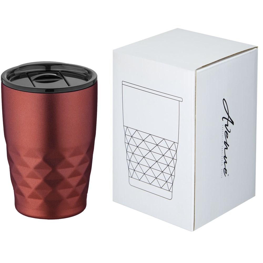 Der Geo Becher hat ein doppelwandiges Vakuum Gehäuse mit kupferbeschichteter Isolierung, sodass Ihr Getränk bis zu 8 Stunden warm und bis zu 24 Stunden kalt bleibt. Die Konstruktion verhindert Kondensation an der Außenseite des Bechers. Leichtes nippen und trinken mit dem Stülpdeckel durch den Schiebeverschluss möglich. Große Öffnung für bequemes Füllen und Eingießen. Volumen 350 ml. Verpackt in einer Avenue Geschenkbox.