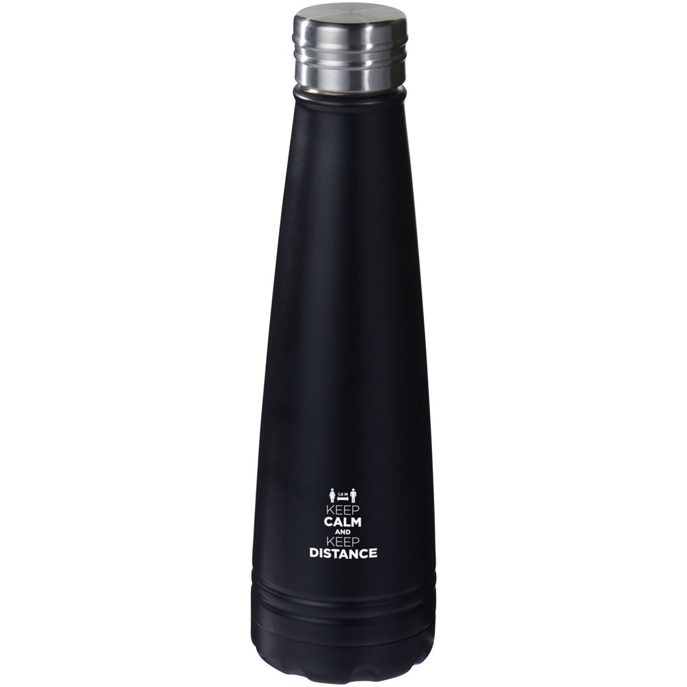 Die Duke Isolierflasche ist aus doppelwandigem Edelstahl 18/8 mit Vakuumisolierung. Die Innenwand ist mit Kupfer plattiert, für ultimative Leitfähigkeit, um Getränke für bis zu 12 Stunden heiß zu halten und bis zu 48 Stunden kalt. Volumen 500 ml. Verpackt in einer Avenue Geschenkbox.