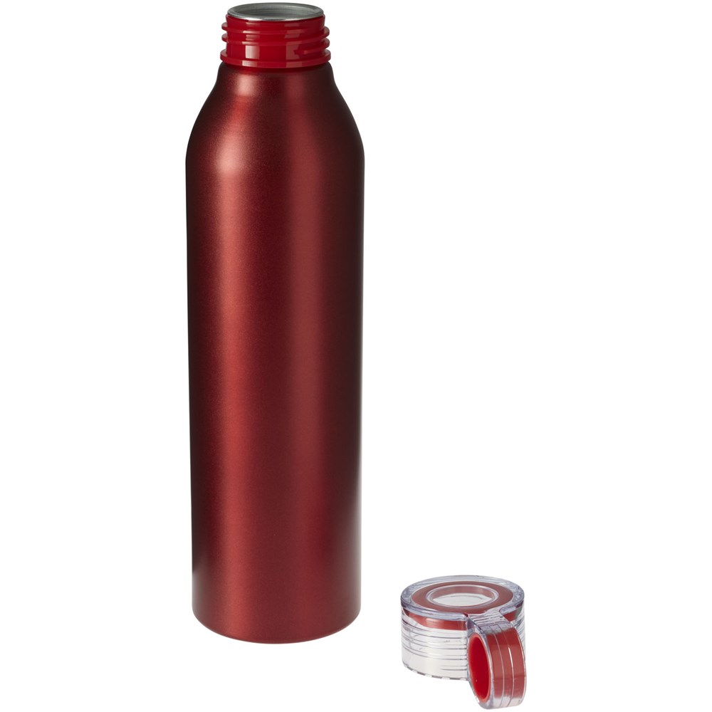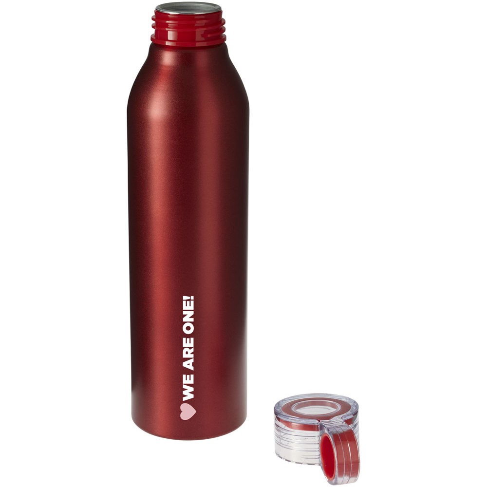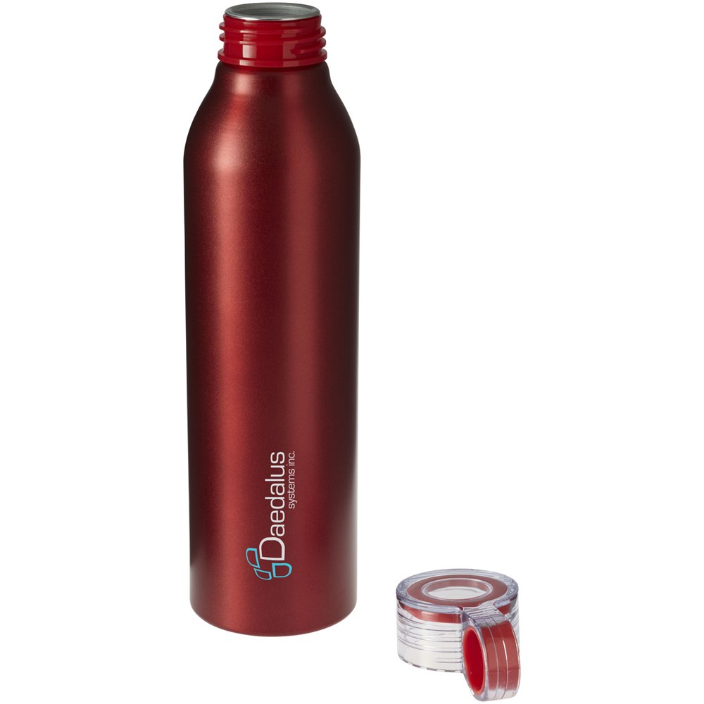 Einwandige Konstruktion. Schraubverschluss mit Auslaufschutz und farbigem Akzent. Leicht zu transportieren. Matte, metallische farbige Oberfläche. Volumen 650 ml.