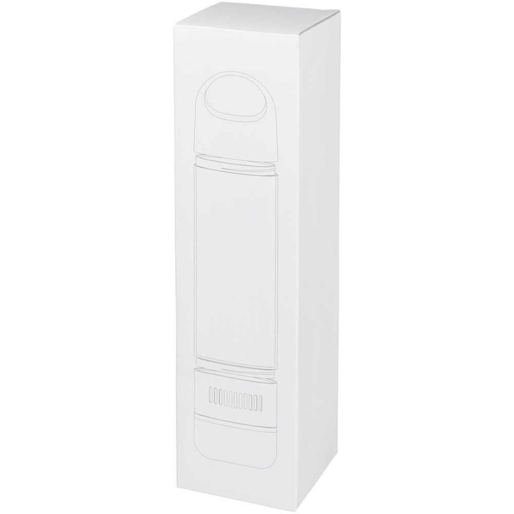 Einwandige Flasche mit aufschraubbarem Deckel. Enthält einen abnehmbaren Bluetooth® Lautsprecher. Inklusive Micro-USB Ladekabel. Reichweite ca. 10 Meter. Volumen 500 ml. Verpackt in einer Geschenkbox.