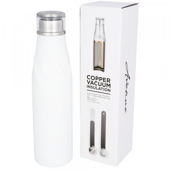Das Design verfügt über eine automatische Versiegelungsmethode, für ein einfaches Öffnen und ein angenehmeres Trinkerlebnis. Eine breite Öffnung zum bequemen Befüllen und Ausgießen. Die robuste, doppelwandige Vakuumkonstruktion aus Edelstahl mit Kupferisolierung ermöglicht es, dass Ihr Getränk 12 Stunden lang heiß und 48 Stunden lang kalt bleibt. Mit einem selbstversiegelnden und auslaufsicheren Deckel. Das Fassungsvermögen beträgt 650ml. Präsentiert in einer Avenue Geschenkschachtel.