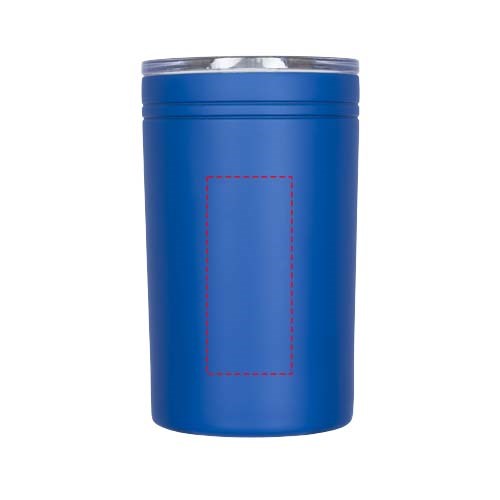 Doppelwandige Konstruktion, vakuumisoliert. Durchsichtiger Stülpdeckel mit Schiebeverschluss. Funktioniert als Becher oder Getränkeisolator. Fassungsvermögen 330 ml.