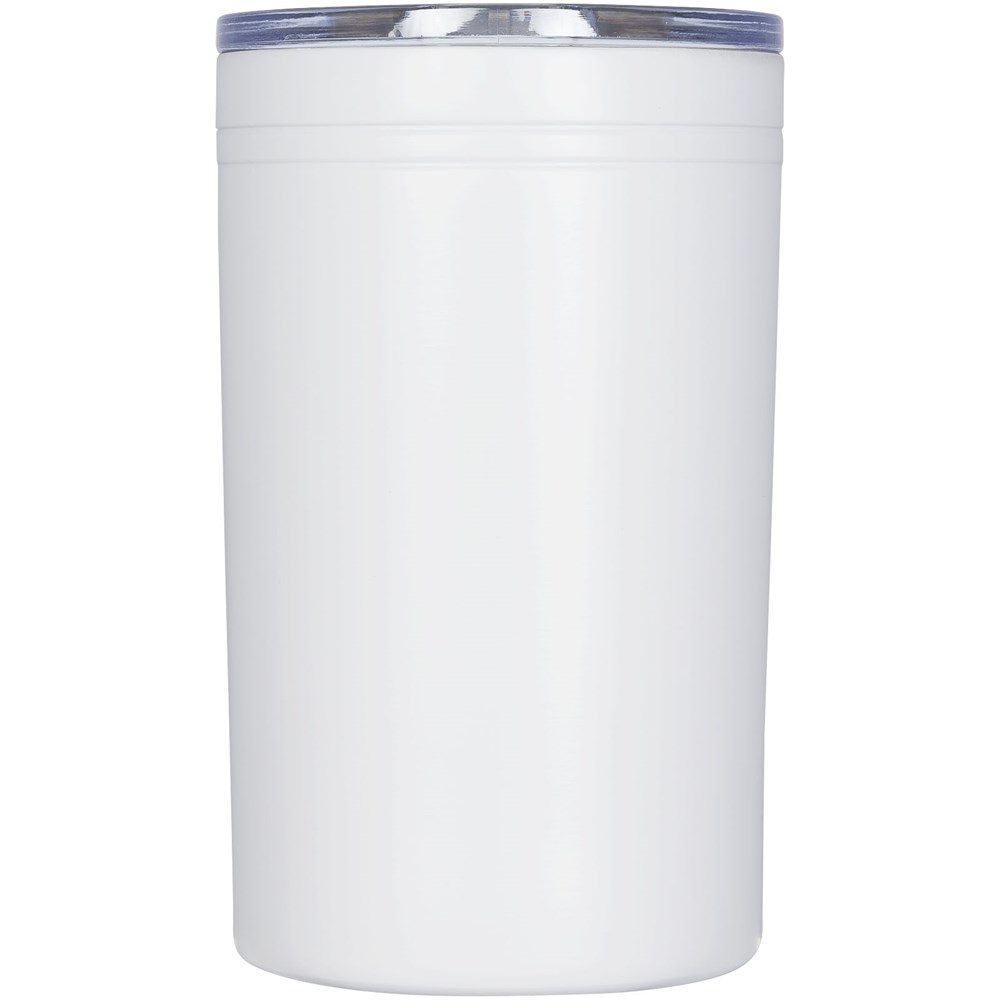Doppelwandige Konstruktion, vakuumisoliert. Durchsichtiger Stülpdeckel mit Schiebeverschluss. Funktioniert als Becher oder Getränkeisolator. Fassungsvermögen 330 ml.