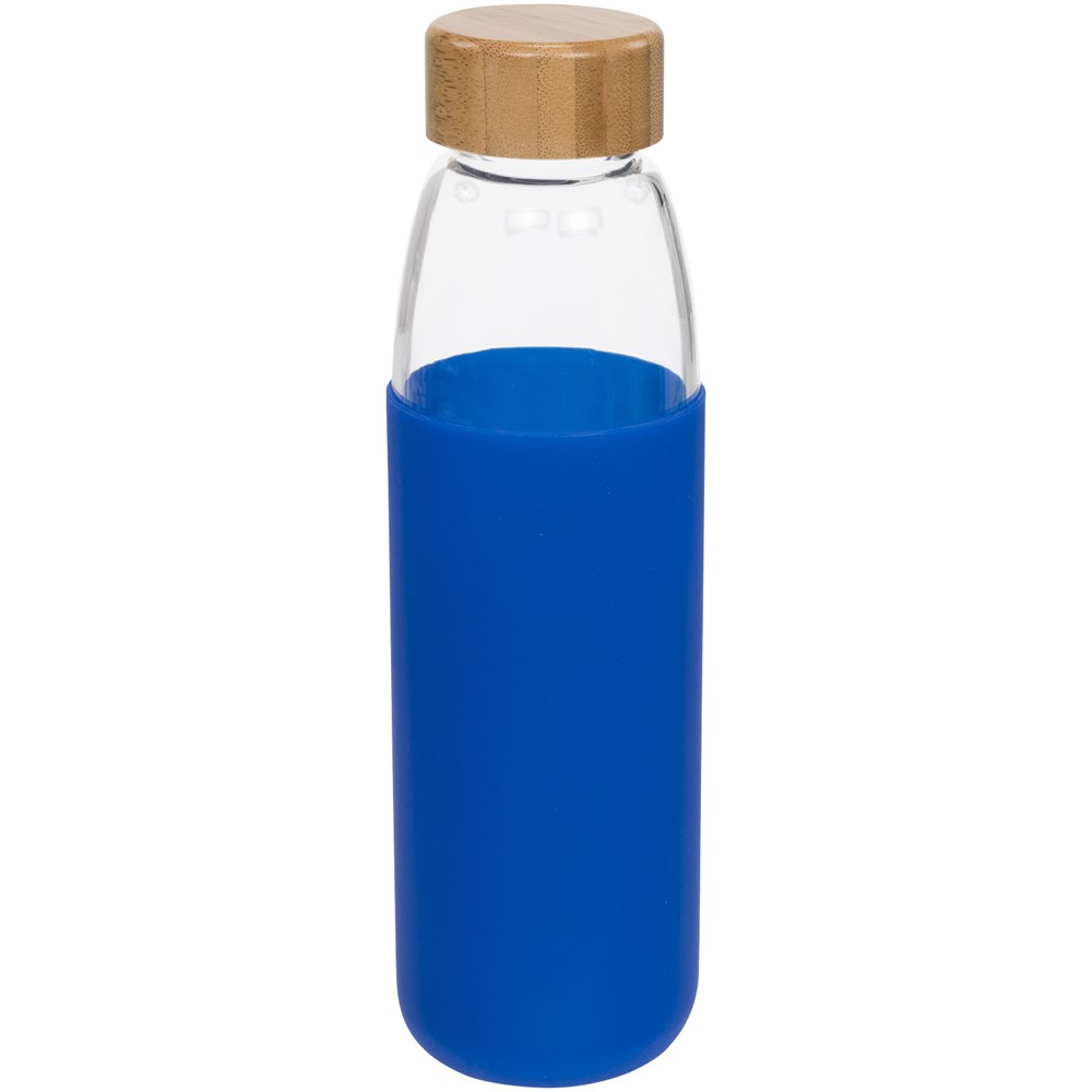 Einwandige BPA-frei Borosilikat-Glasflasche in einer weichen Silikonhülle. Mit Bambus-Schraubverschluss und rutschfestem Boden. Nicht für das Einfrieren geeignet, nicht mikrowellengeeignet. Fassungsvermögen 540ml. In einem Avenue-Geschenkkarton präsentiert.