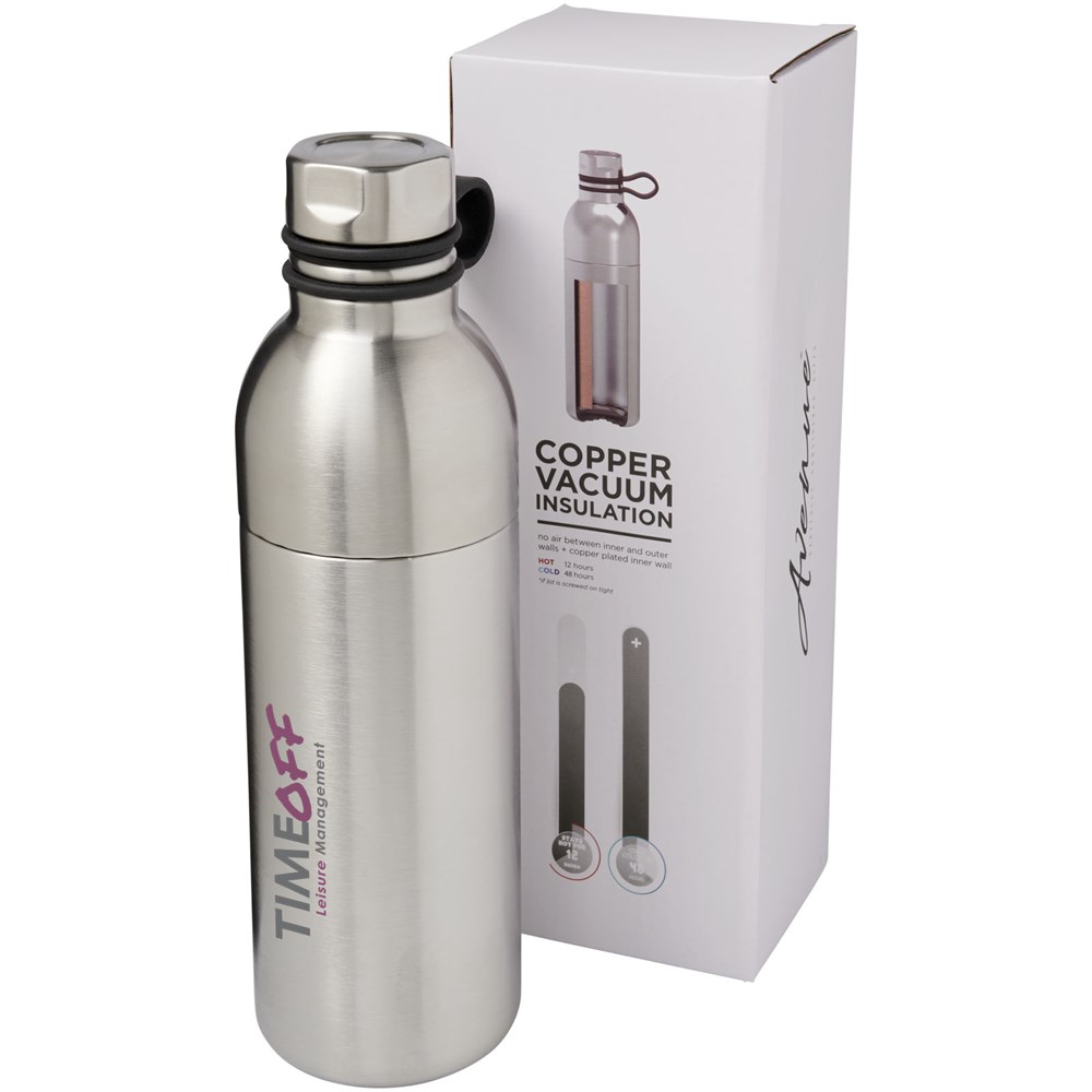Die doppelwandige Vakuumkonstruktion aus Edelstahl mit Kupferisolierung ermöglicht es, dass Ihr Getränk 48 Stunden lang kalt und mindestens 12 Stunden lang heiß bleibt. Die Konstruktion verhindert auch eine Kondensation an der Außenseite der Flasche. Ausgestattet mit einem Schraubverschluss und einem Edelstahldeckel mit einer komfortablen Silikon-Schlaufe. Konstruktion mit zwei Öffnungen für einfache Reinigung und Befüllung. Das Fassungsvermögen beträgt 590ml. Präsentiert in einer Avenue-Geschenkschachtel.