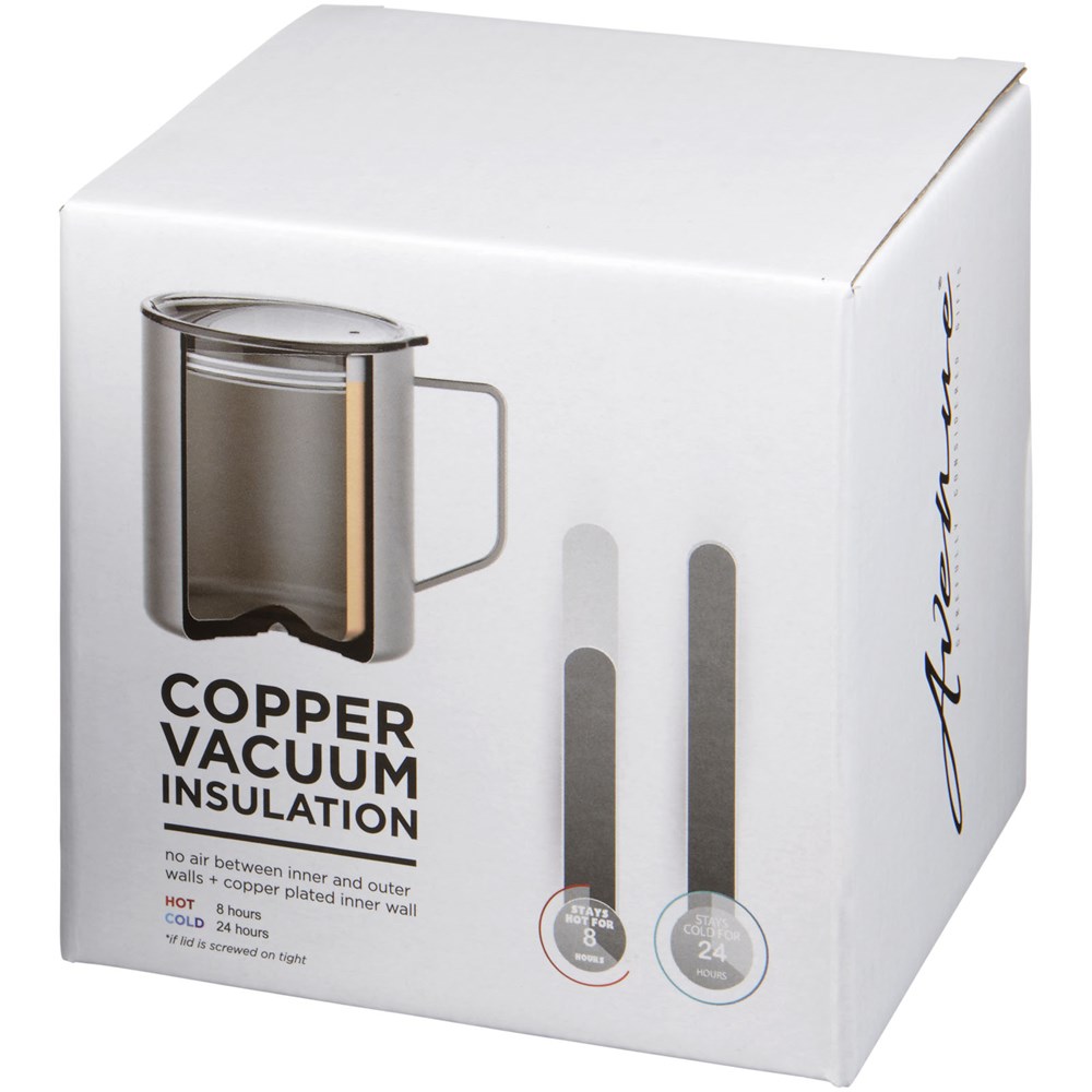 Die doppelwandige Vakuumkonstruktion aus Edelstahl mit Kupferisolierung ermöglicht es, dass Ihr Getränk 24 Stunden lang kalt und mindestens 6 Stunden lang heiß bleibt. Die Konstruktion verhindert auch eine Kondensation an der Außenseite des Artikels. Auslaufsicherer Deckel zum Aufdrücken. Trendige, langlebige Pulverbeschichtung. Das Fassungsvermögen beträgt 420ml. Präsentiert in einer Avenue-Geschenkschachtel.