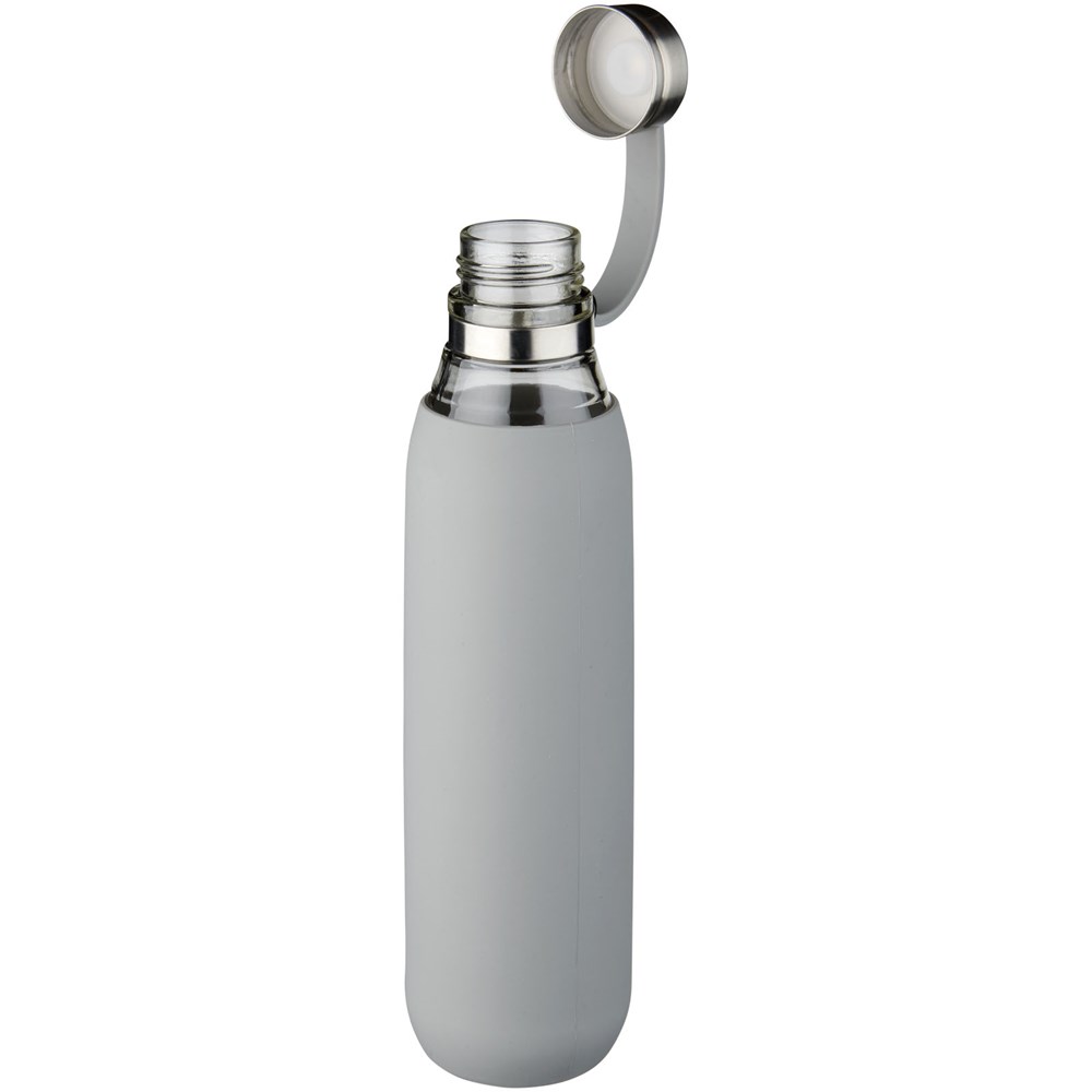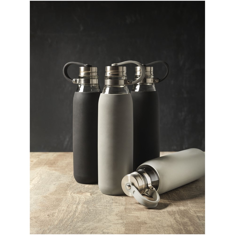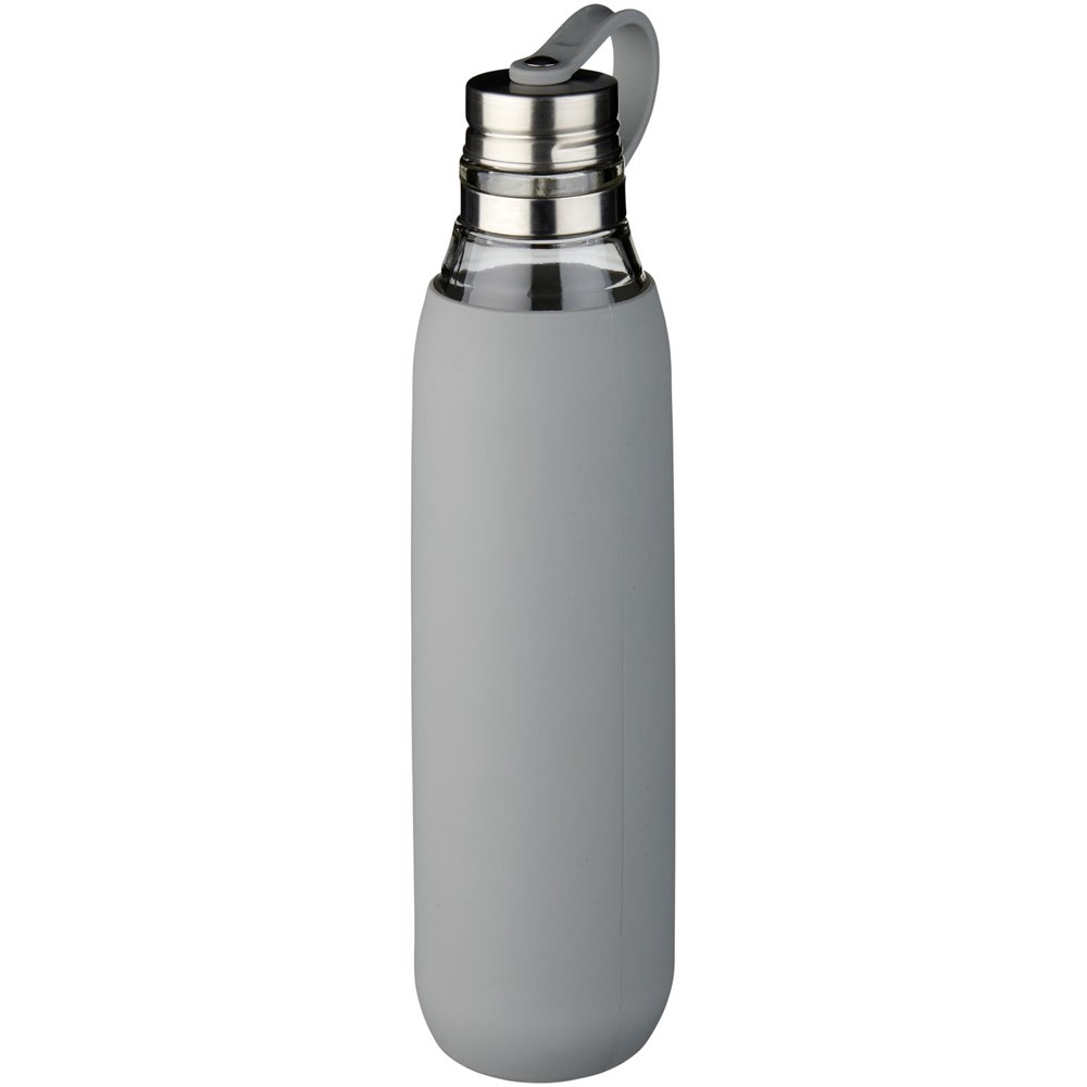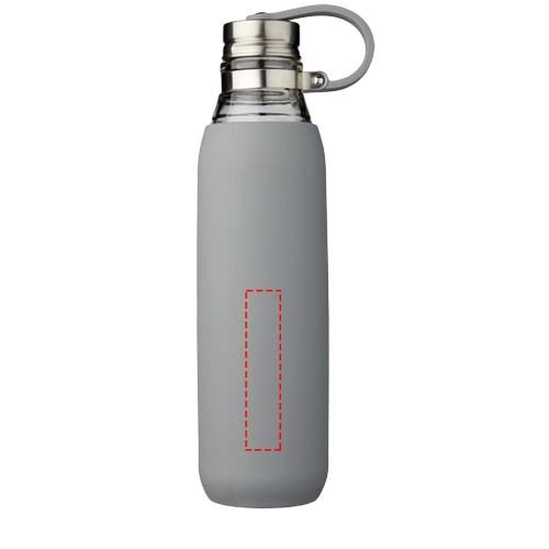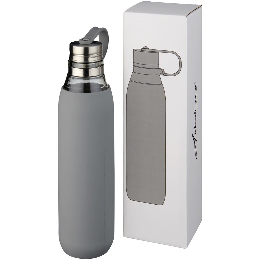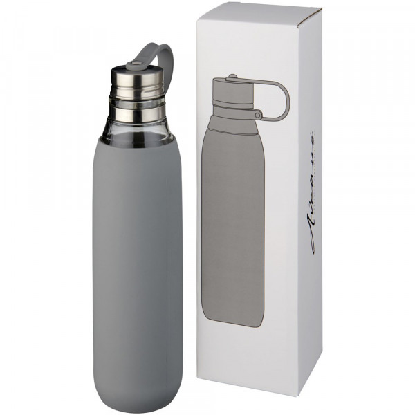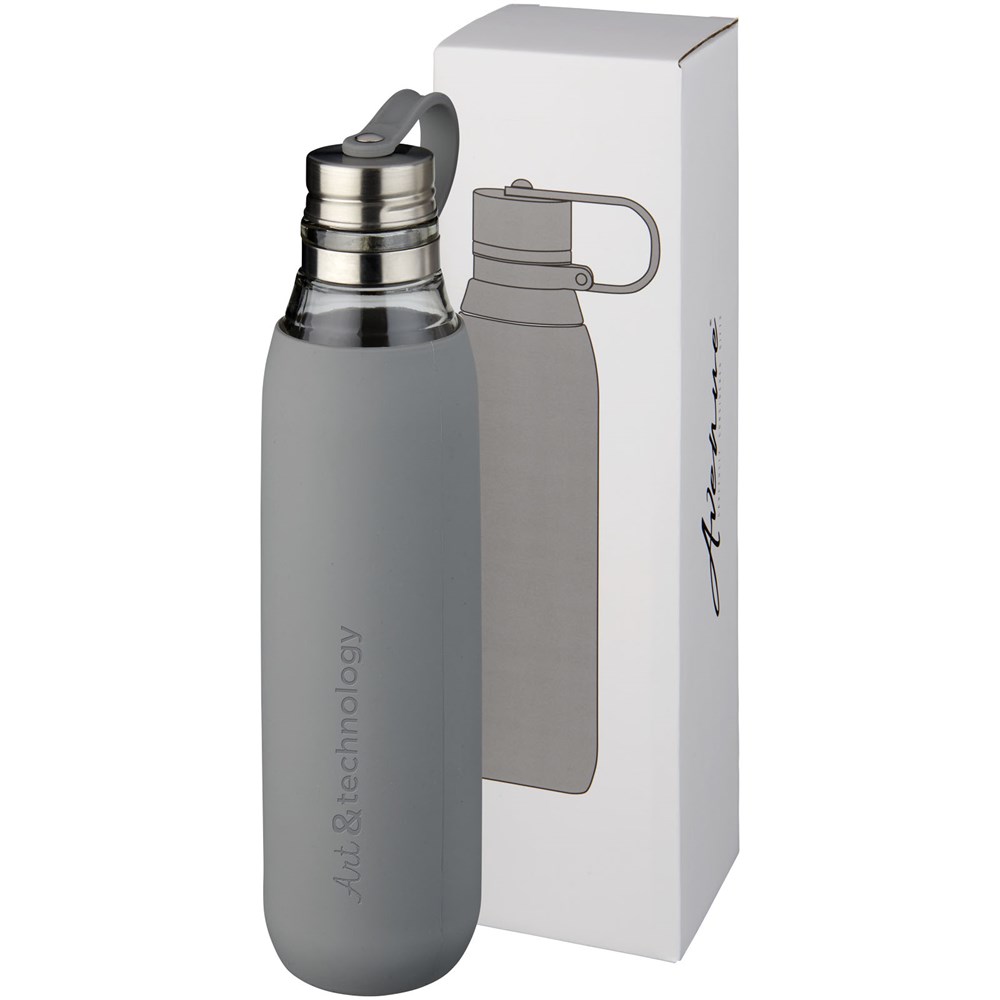 Einwandige Glasflasche, umhüllt von einer griffigen Silikonhülle mit rutschfestem Boden. Ausgestattet mit einem Schraubverschluss und einem Edelstahldeckel mit einer komfortablen Silikon-Schlaufe. Nicht einfrieren, nicht in die Mikrowelle stellen. Das Fassungsvermögen beträgt 650ml. Präsentiert in einer Avenue-Geschenkschachtel.