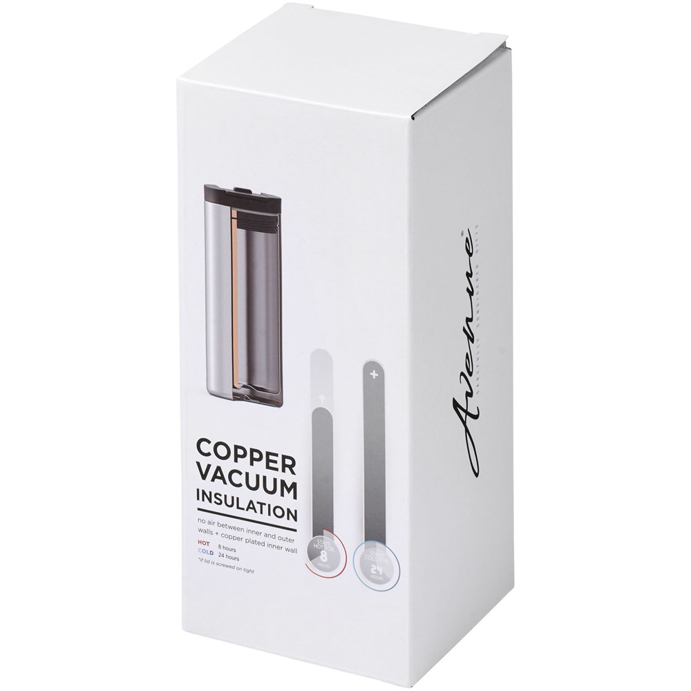 Ein kompakter und langlebiger Becher, der sich ideal für Arbeit oder Reisen eignet. Der Becher verfügt über eine doppelwandige Vakuum-Konstruktion mit Kupfer-Isolierung, was bedeutet, dass er Getränke 8 Stunden heiß und 24 Stunden kalt hält. Der Deckel hat eine Verriegelungsfunktion. Die Konstruktion verhindert außerdem Kondenswasser auf der Außenseite des Bechers. Das Fassungsvermögen beträgt 360 ml. Präsentiert in einer Avenue-Geschenkschachtel.