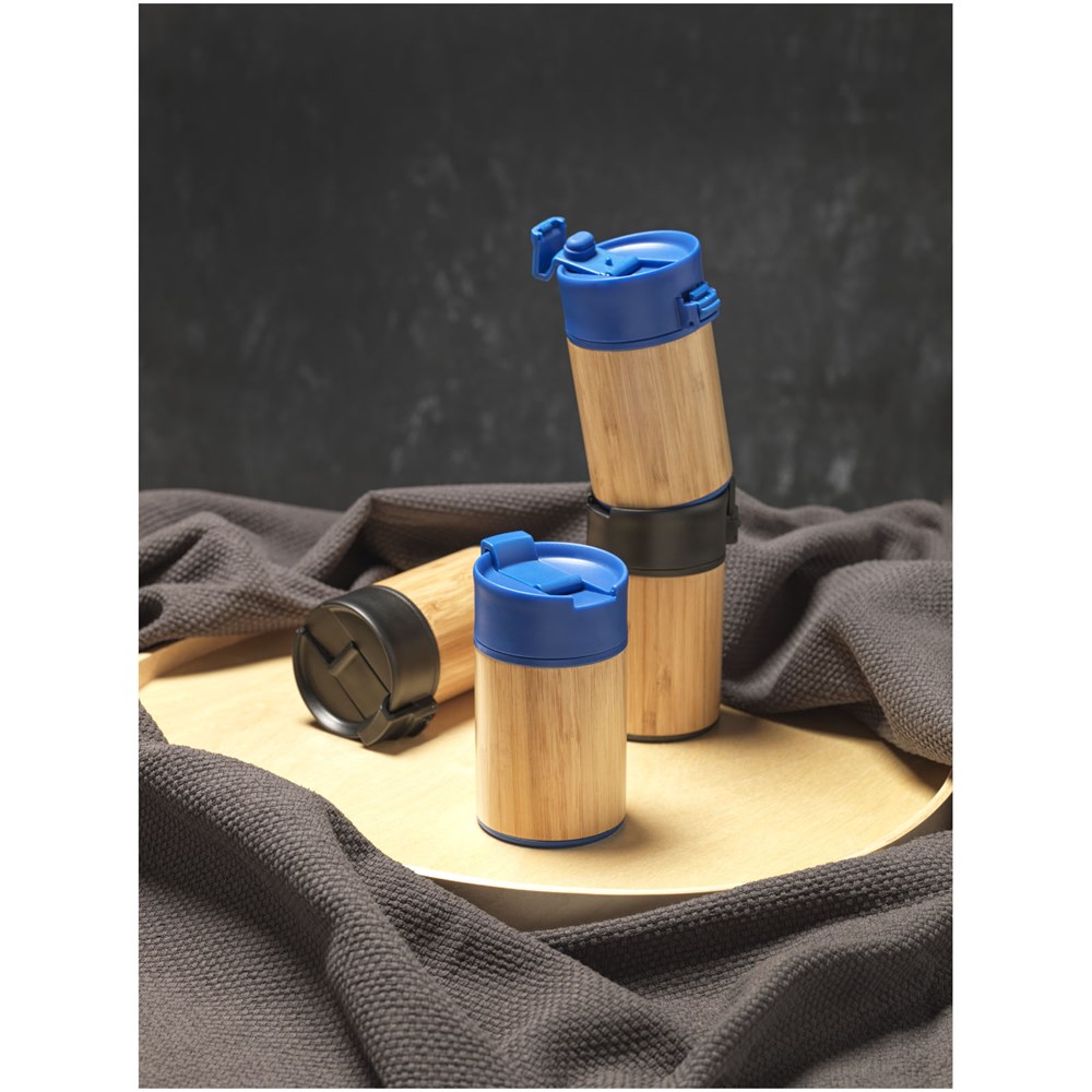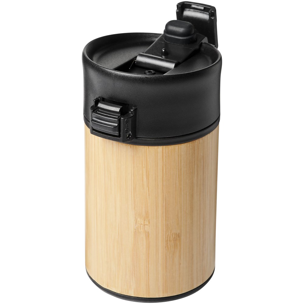Doppelwandiger vakuumisolierter Becher mit einem Schließdeckel in aufklappbarer Ausführung. Der Becher hat eine doppelwandige Vakuumkonstruktion aus Edelstahl mit Kupferisolierung und einer Außenseite aus natürlichem Bambus. Er hält Getränke 8 Stunden warm und 24 Stunden kalt. Die Konstruktion verhindert außerdem Kondenswasser auf der Außenseite des Bechers. Ein idealer, kompakter und tragbarer Becher für unterwegs. Das Fassungsvermögen beträgt 200 ml. Präsentiert in einer Avenue-Geschenkschachtel.