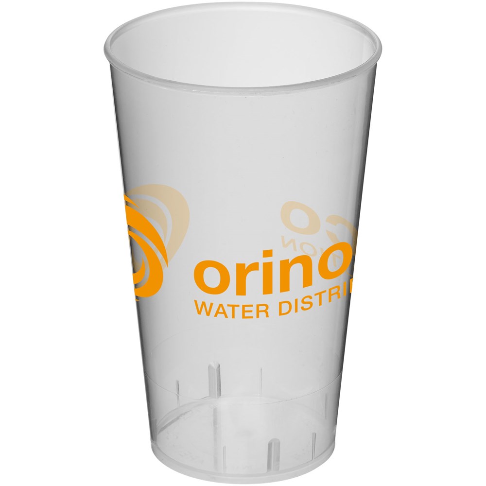 Einwandiger Kunststoffbecher. Eine preiswerte Wahl für wiederverwendbare Getränkebecher. Das Fassungsvermögen beträgt 375 ml. Hergestellt in Großbritannien.