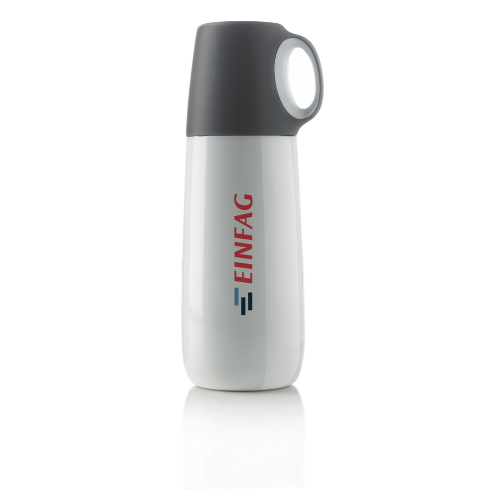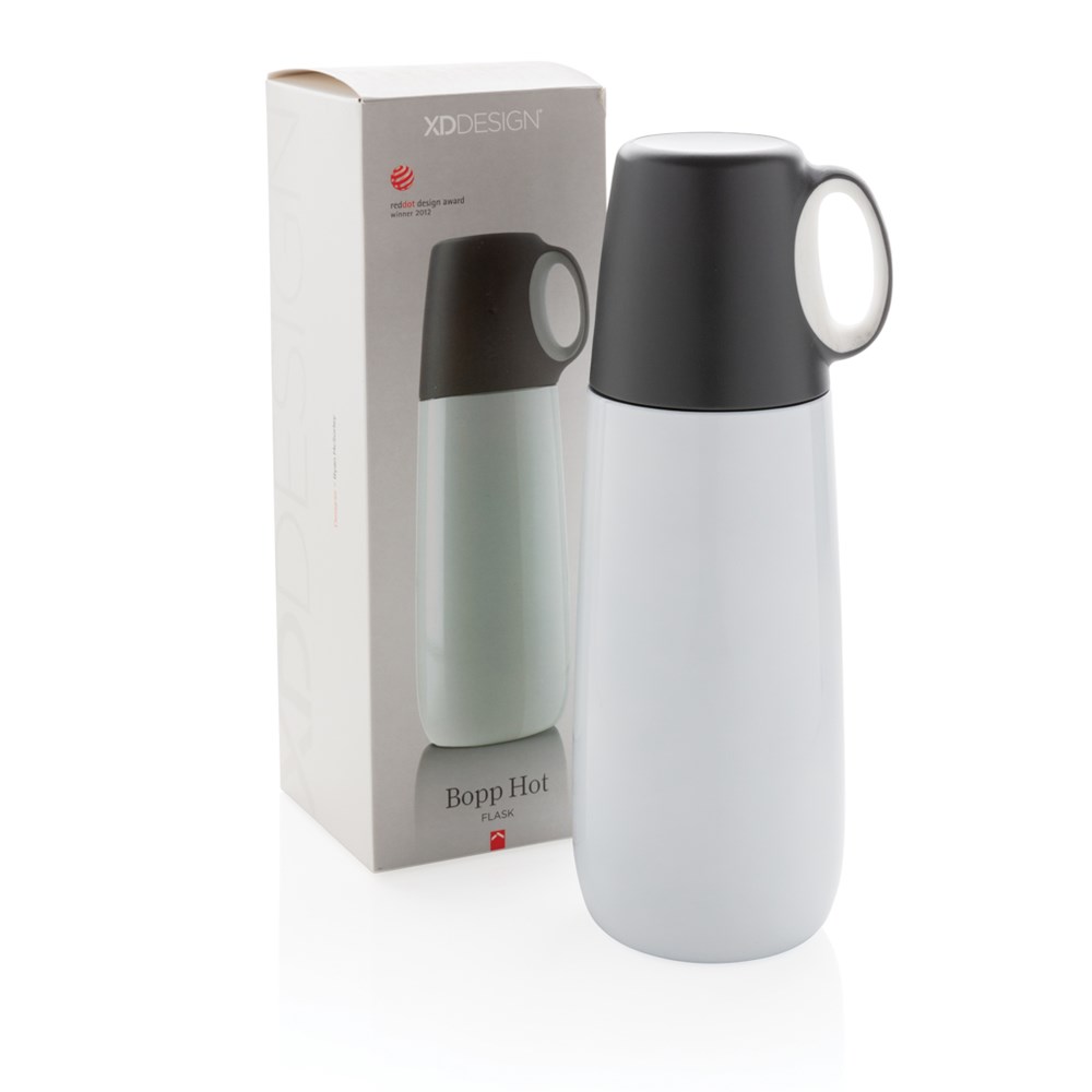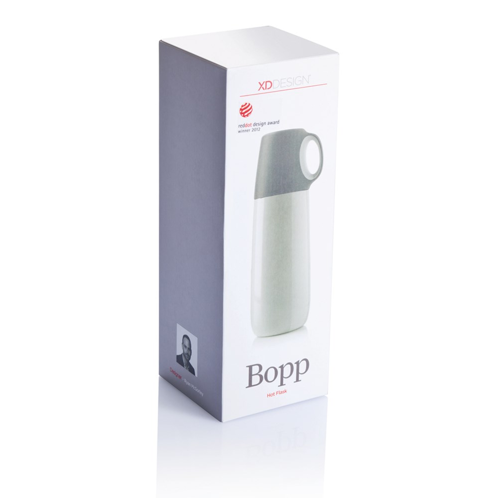 Die 600ml Bopp Hot Isolierflasche in mattem Finish, mit Druckverschluss und Henkeltasse, ist das ideale Accessoire für jeden Kaffeeliebhaber. Nur Handwäsche. Geschütztes Design®