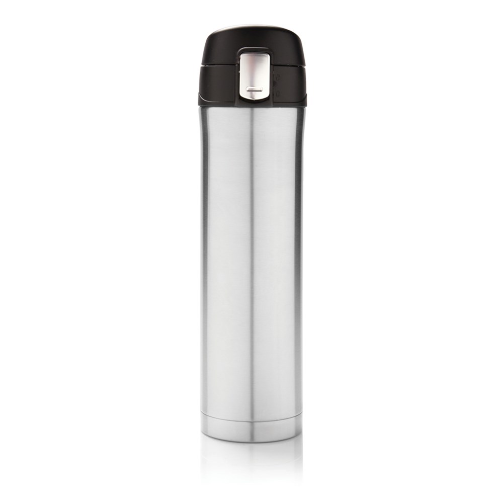 Doppelwandige Edelstahl Vakuum Flasche, die Ihr Getränk bis zu 5h warm hält oder ein Getränk für bis zu 15h kühlt. Der Deckel ist verschließbar, was wiederum das Auslaufen oder Tropfen des Inhalts verhindert. Der Deckel ist einfach zu reinigen und kann so hygienisch sauber gehalten werden. Er ist sogar Geschirrspülmaschinen geeignet. Das einzigartige Design der Flasche erlaubt es Ihnen einfach und sicher mit einer Hand direkt aus der Flasche zu trinken. Die Größe der Flasche ist passend für jeden Autogetränkehalter. Kapazität: 450 ml. Nur Handwäsche.