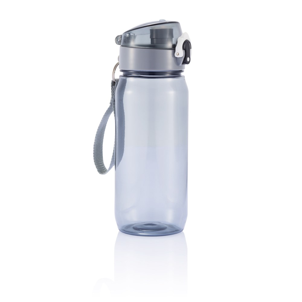 600ml Tritan Trinkflasche mit verschließbarem Deckel und Druckfunktion zur einfachen Ein-Hand-Öffnung. Mit praktischem Trageriemen. Nur Handwäsche.