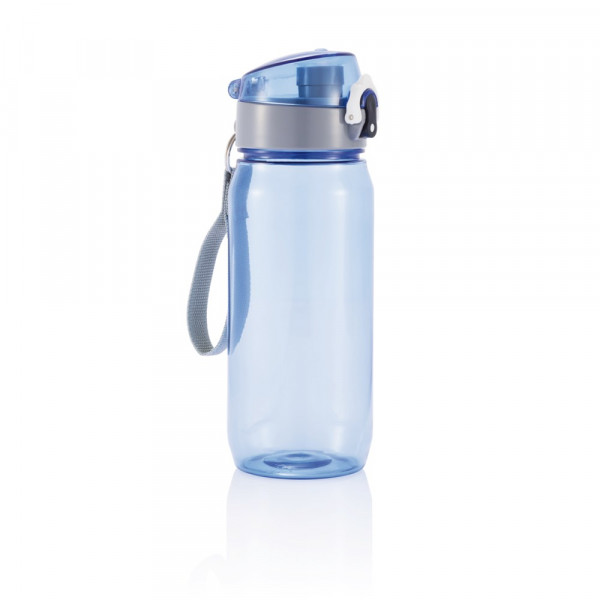 600ml Tritan Trinkflasche mit verschließbarem Deckel und Druckfunktion zur einfachen Ein-Hand-Öffnung. Mit praktischem Trageriemen. Nur Handwäsche.
