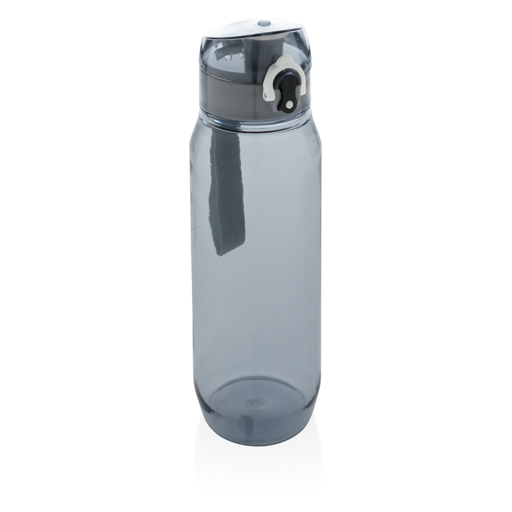 Auslaufsichere Tritanflasche mit verschließbarem Deckel und Einhand-Öffnung. Mit Trageriemen. 100% BPA-frei. Inhalt: 800ml. Nur Handwäsche.