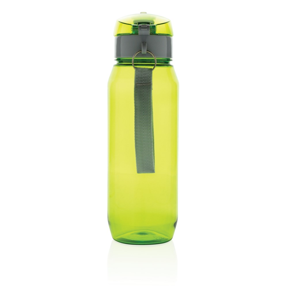 Auslaufsichere Tritanflasche mit verschließbarem Deckel und Einhand-Öffnung. Mit Trageriemen. 100% BPA-frei. Inhalt: 800ml. Nur Handwäsche.