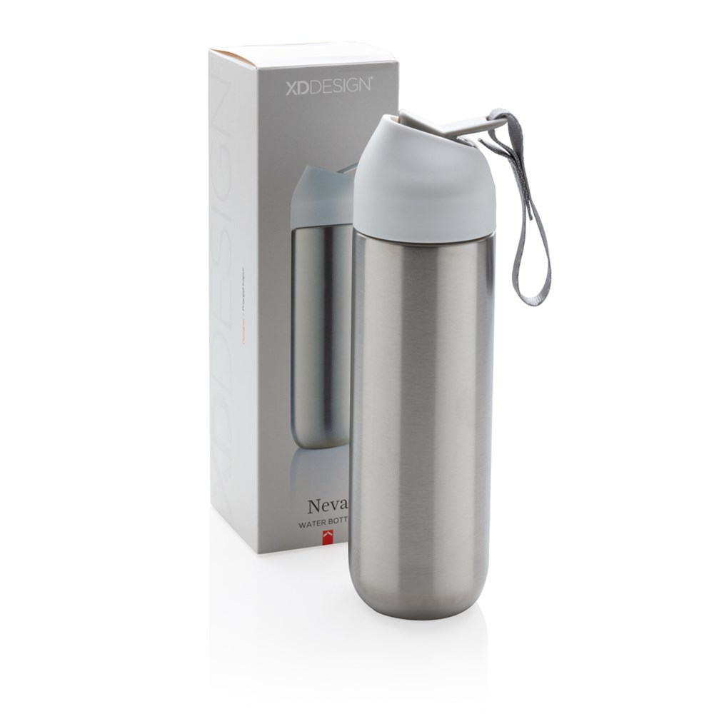 Neva bietet sich als perfekte Alternative im Kampf gegen Einwegplastikflaschen an. Durch die Verwendung von 304 Edelstahl ist diese 500ml Wasserflasche immer wieder wiederverwendbar. Die Stofflasche erfüllt einen doppelten Nutzen: Die Lasche ermöglicht sowohl ein einfaches Tragen dieser auslaufgeschützten Flasche, als auch ein schnelles Öffnen des Trinkschnabels. Nur Handwäsche. Geschütztes Design®
