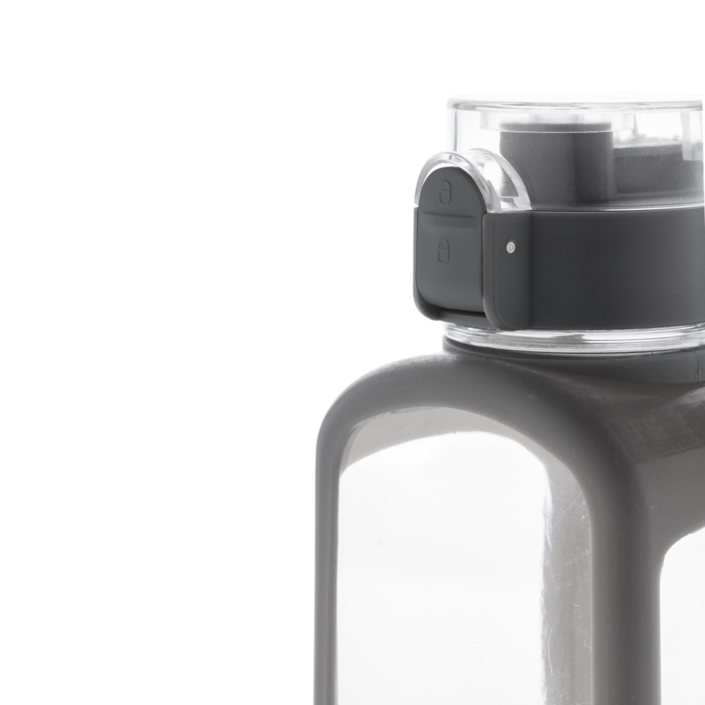 Die Flasche in einzigartiger Form mit Silikonelementen schmiegt sich perfekt an Ihre Hand. Drücken Sie den Knopf und der Deckel springt auf, es gibt aber auch einen speziellen Schließmechanismus, der davor bewahrt die Flasche aus Versehen zu öffnen. Hergestellt aus langlebigem und innovativem Tritan. 100% BPA-frei. Inhalt: 600ml. Nur Handwäsche. Registered design®
