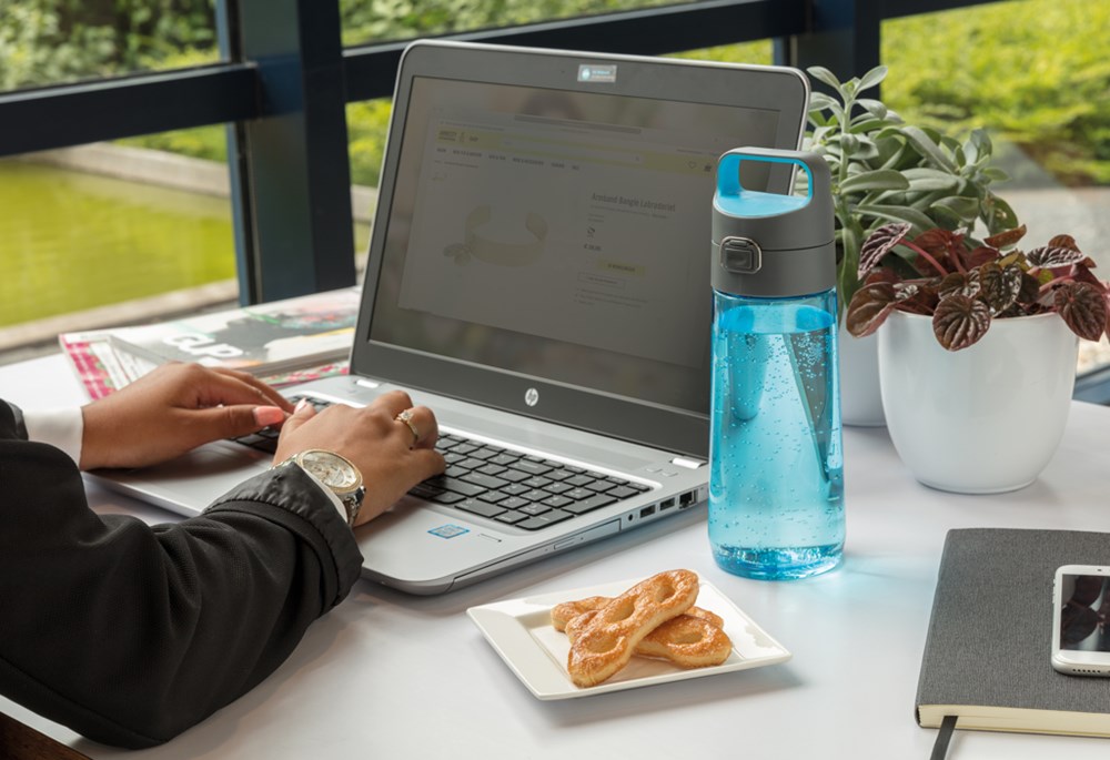 Auslaufsichere und verschließbare Tritanflasche mit Griff. Inhalt: 600ml. Nur Handwäsche. Registered design®