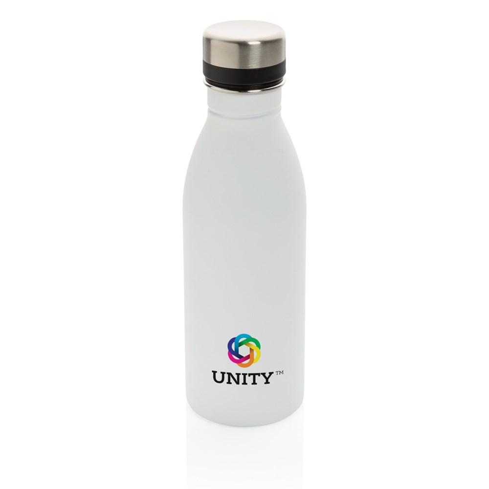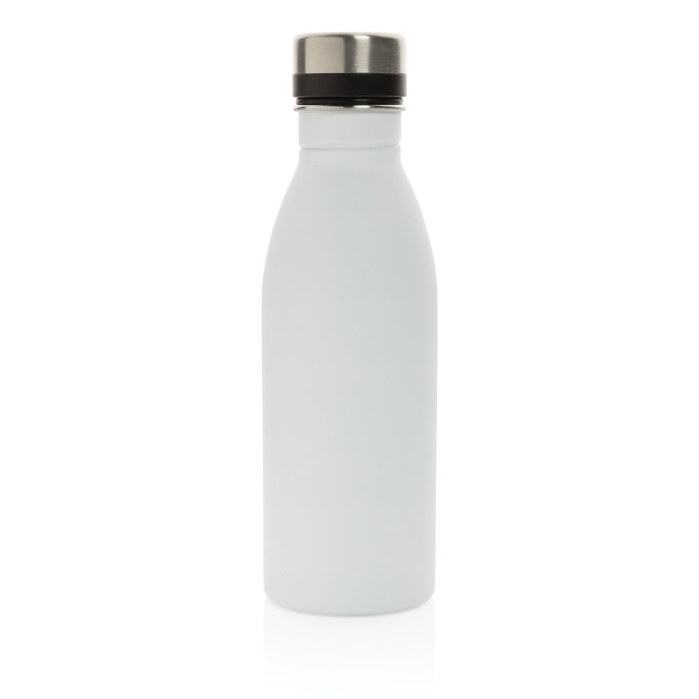 Diese Wasserflasche aus 18/8 Stahl ist ein Leichtgewicht und somit perfekt für den Alltag. Nur für kalte Getränke geeignet. In vielen Farben erhältlich. Die weiß-graue ist PMS Cool Gray 1. Inhalt: 500ml. Nur Handwäsche.