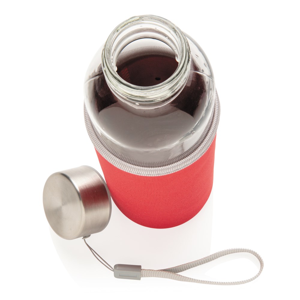 Für diejenigen, die lieber aus Glas als aus Edelstahl trinken, ist diese 500ml-Glasflasche mit abnehmbarer, farbiger Neoprenhülle perfekt für unterwegs. Der geflochtene Tragegurt erleichtert das Tragen, die Neoprenhülle schützt Ihre Flasche. Auslaufsicher und mit Schraubdeckel aus Stainless Steel. Nur für kalte Getränke geeignet. BPA-frei. Nur Handwäsche.