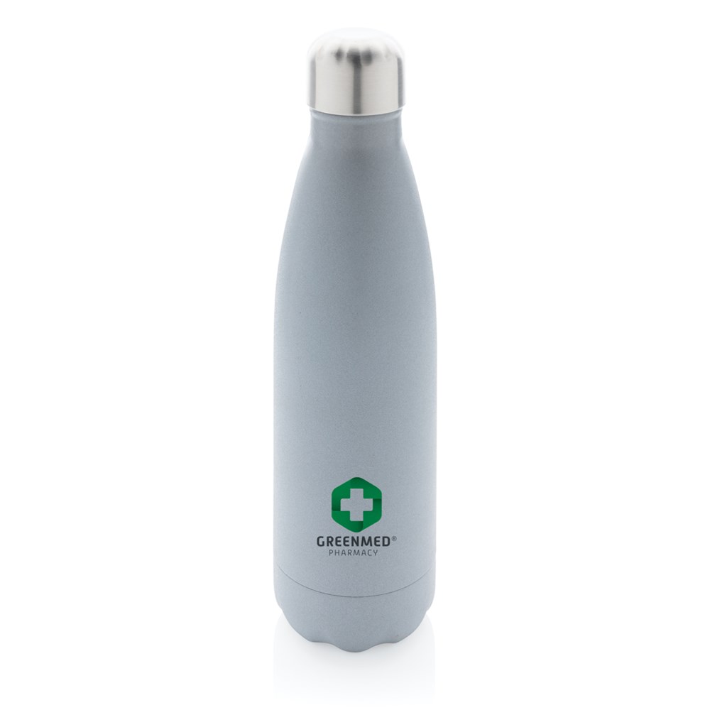 Diese vakuumisolierte Stainless Steel Flasche im schlichten Design hat ein 360 Grad rundum reflektierendes Coating und hält Ihre Getränke bis zu 15h kalt sowie bis zu 5h warm. Kapazität 500ml. BPA frei. Nur Handwäsche.