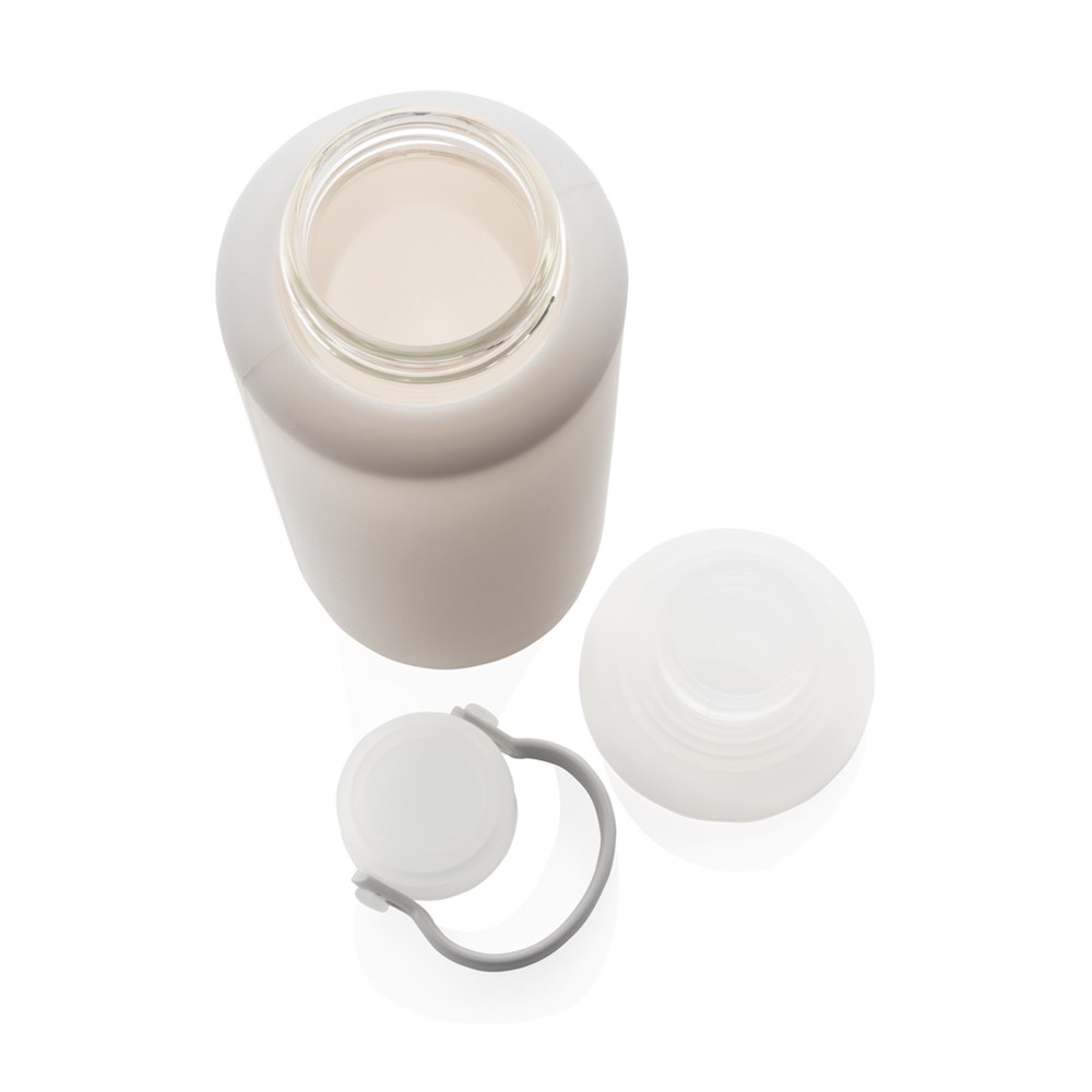 Schlicht und schick! Glas ist zu 100% recycelbar, beinhaltet keine Chemikalien, ist BPA-frei, enthält keine Phthalate, ist PVC-frei, Cadmium-frei, Blei-frei und somit Sorgenfrei. Hergestellt aus hitzebeständigem Borosilikatglas mit schickem Silikon-Sleeve zum Schutz vor Hitze oder Bruch, sollte die Flasche mal aus der Hand rutschen. Inhalt: 500ml. Nur Handwäsche.