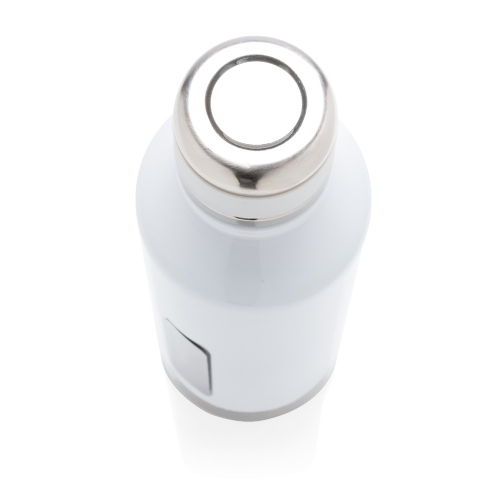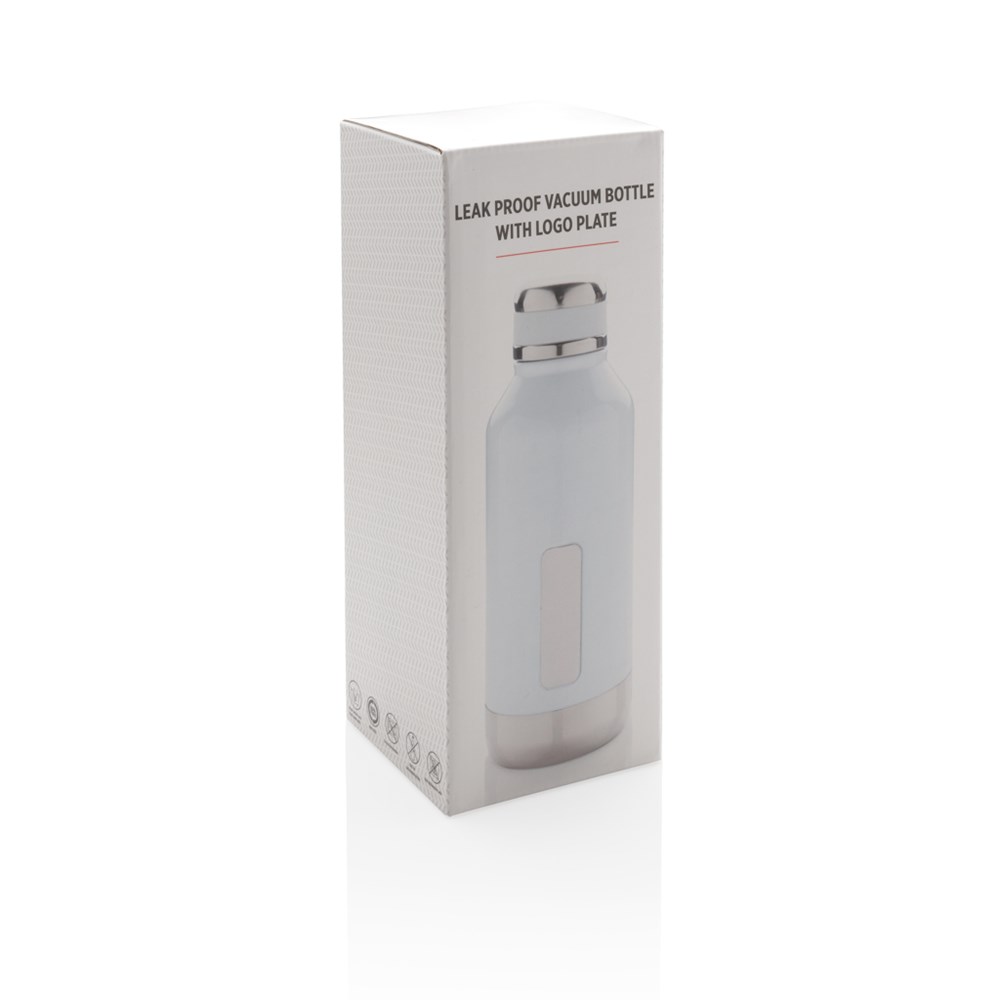 Diese auslaufsichere Vakuumflasche mit abschraubbarem Deckel hat eine spezielle Platte für Ihr Logo. Innen 304 Stainless Stell und außen 201 Stainless Steel. Hält Ihre Getränke bis zu 5h warm und bis zu 15h kalt. Inhalt: 500ml. Nur Handwäsche.