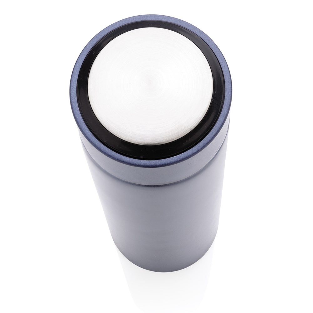 Halten Sie Ihren Kaffee oder Tee mit dieser Vakuum-Edelstahlflasche mit gebürstetem Metalldeckel schön warm. Die Flasche verfügt über einen auslaufsicheren Schraubdeckel und ermöglicht das Trinken von jeder Seite. Mit breiter Öffnung für eine einfache Reinigung. Kapazität 450ml. BPA-frei. Nur Handwäsche.