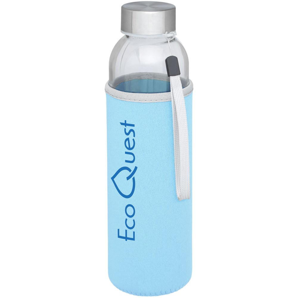 Einwandige Glasflasche mit Schraubdeckel. Der Deckel verfügt über einen Gurt zum einfachen Tragen sowie eine Neoprenhülle. Empfohlen für kalte Getränke. Nicht einfrieren, nicht Mikrowellengeeignet. Das Fassungsvermögen beträgt 500 ml. Verpackt in einer Geschenkschachtel.