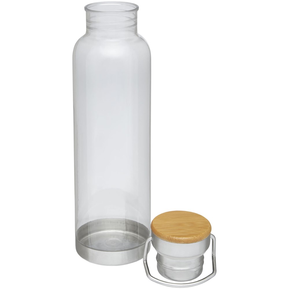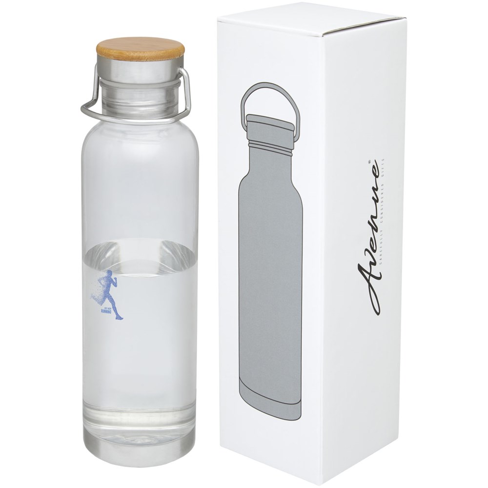 Einwandige Sportflasche aus strapazierfähigem Tritan™-Material. Bruch-, schmutz- und geruchbeständig. Ausgestattet mit einem Schraubdeckel mit Bambusoberteil sowie einem Griff zum einfachen Tragen. BPA-frei. Das Fassungsvermögen beträgt 800 ml. Verpackt in einer Avenue-Geschenkschachtel.