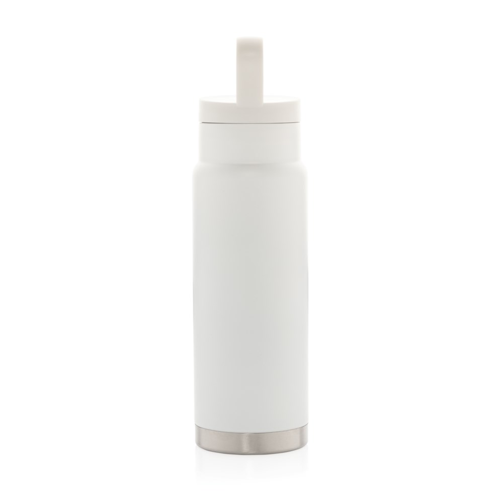 Mit dem Tragegriff auf dem Deckel lässt sich diese Stainless Steel Flasche mit Vakuum-Isolierung perfekt überall hin mitnehmen. Hält Ihre Getränke bis zu 5h warm und bis zu 15h kalt. Kapazität 650ml. BPA frei. Nur Handwäsche.