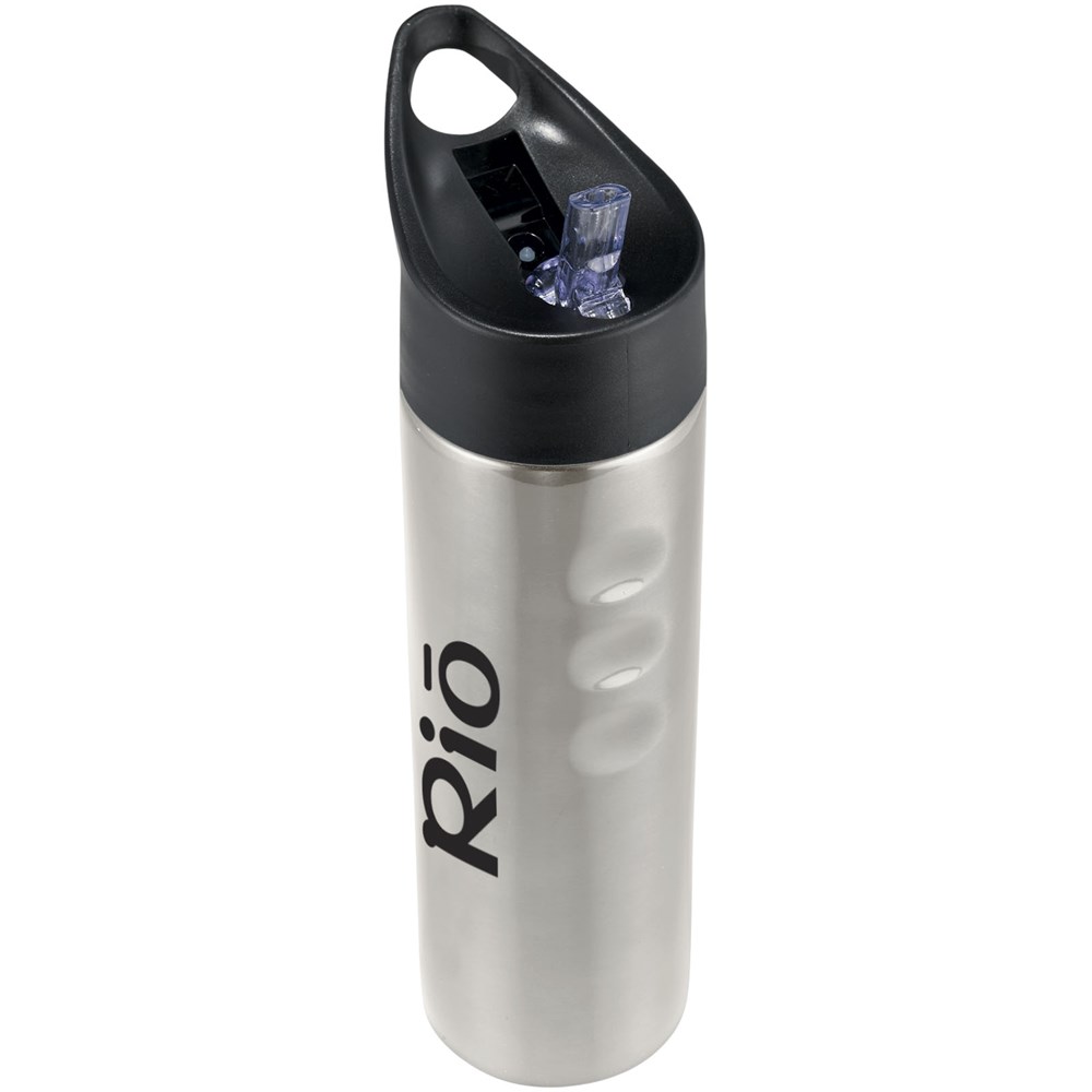 Einwandiges Gehäuse. Schraubverschluss, Auslaufschutz mit hochziehbarer Trinköffnung. Seitliche Griffmulden für einfache Handhabung. Volumen 750 ml.