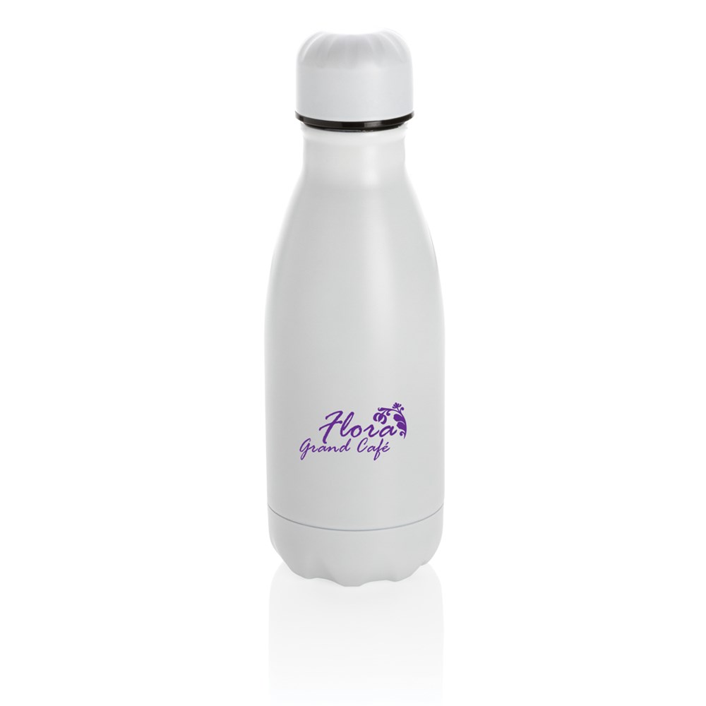 Steigern Sie Ihre tägliche Wasseraufnahme mit dieser einfarbigen, vakuumisolierten Edelstahlflasche. Die Flasche hält gekühlte Getränke bis zu 15 Stunden kalt und heiße Getränke bis zu 5 Stunden warm. Da sie in die in die meisten Getränkehalter passt, hält diese schlanke Wasserflasche Sie auch unterwegs mit Ihrem Getränk versorgt; wo immer Sie sind. Aufgrund der Größe auch perfekt für Kinder geeignet oder um sie in Ihrer Tasche zu verstauen. Inhalt: 260. Nur Handwäsche.