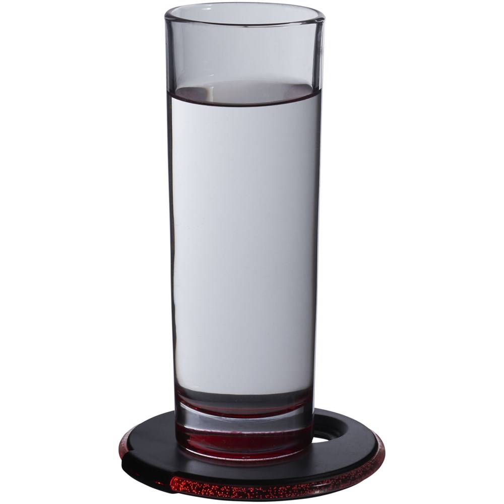 Ein Untersetzer mit Flaschenöffner und farbverändernden Fähigkeiten, wenn eine Flasche oder ein Glas darauf abgestellt wird.