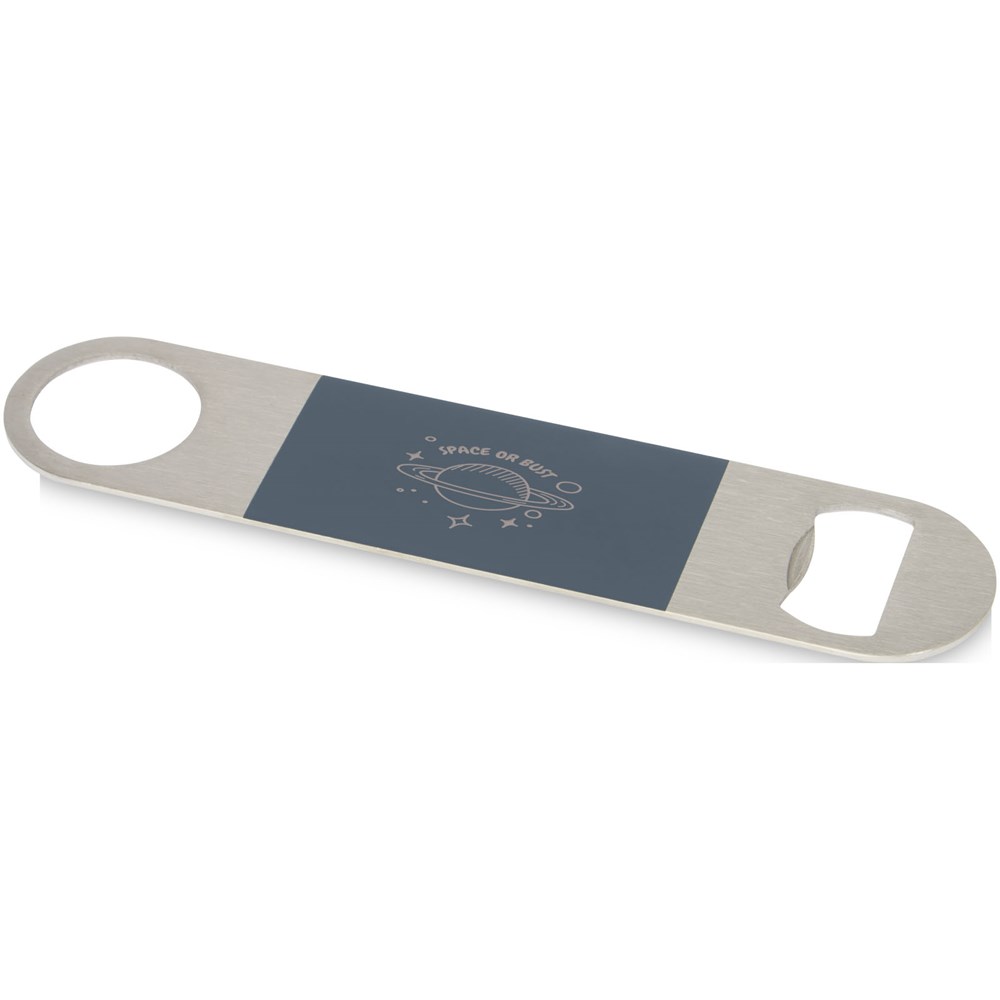 Flaschenöffner aus Edelstahl mit einer großen farbigen Fläche in der Mitte.