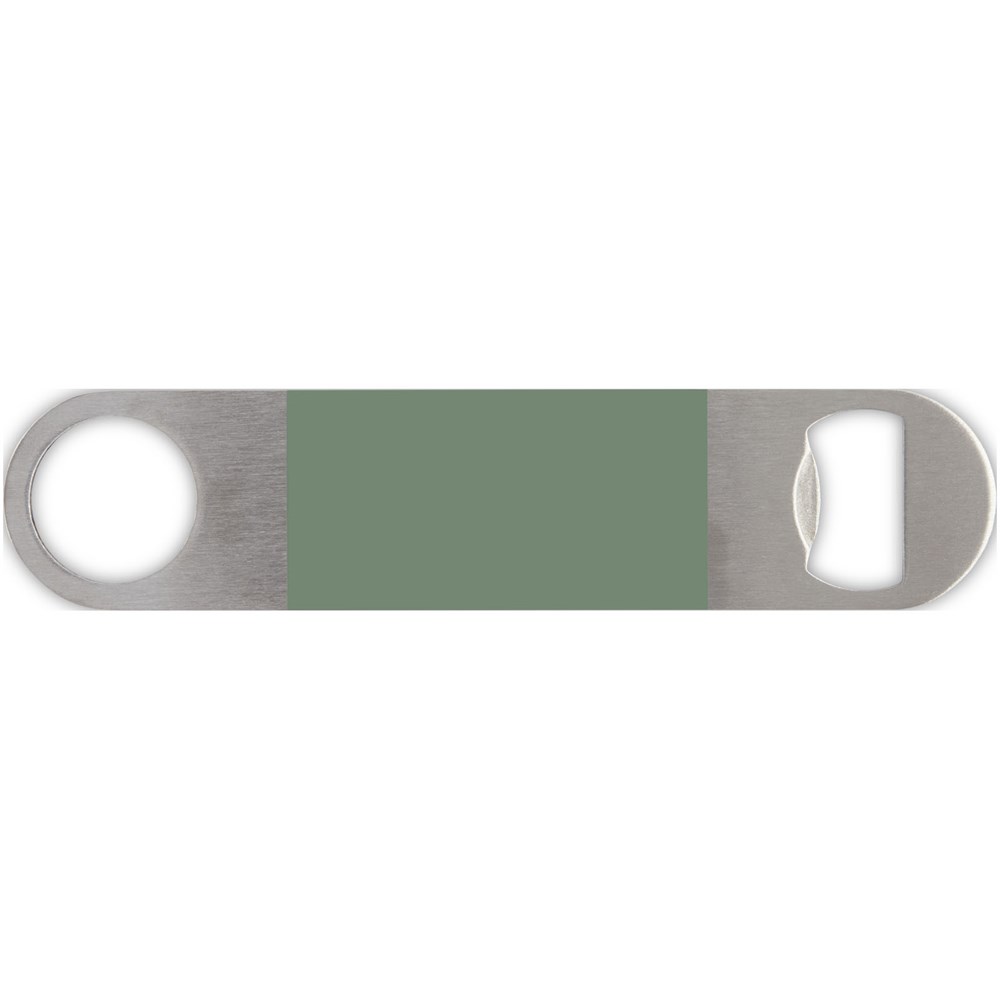 Flaschenöffner aus Edelstahl mit einer großen farbigen Fläche in der Mitte.
