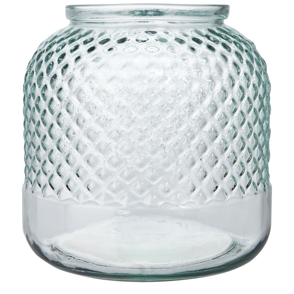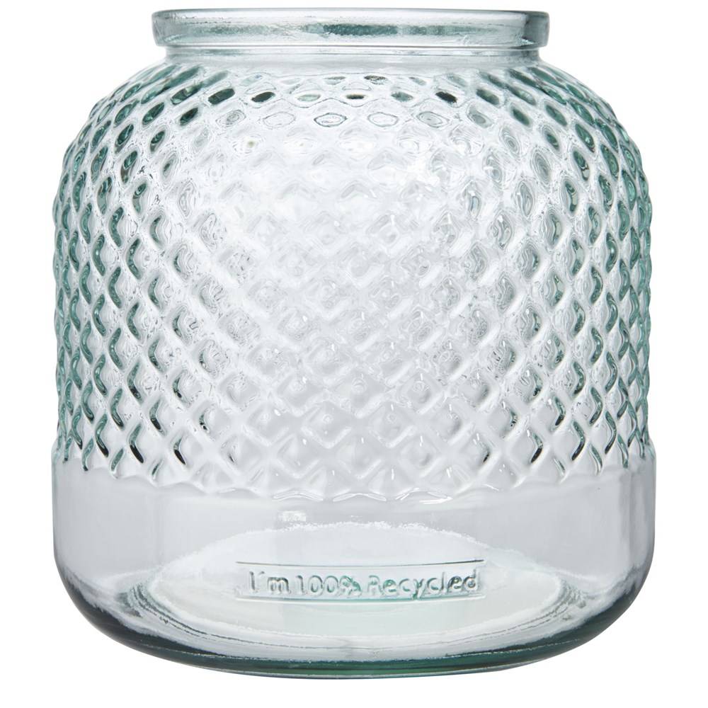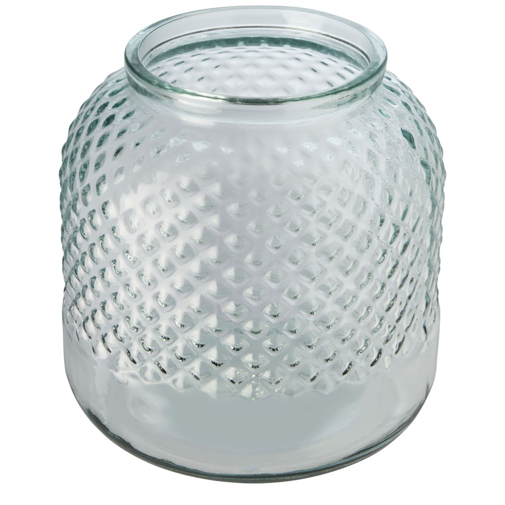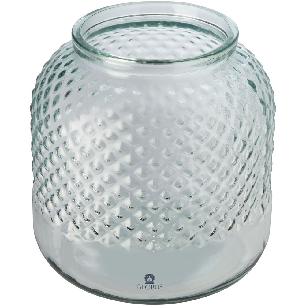 Kerzenhalter aus recyceltem Glas mit Diamanteffekt. Hergestellt aus 2 Flaschen aus Glas. Recyceltes Glas wird mit weniger Energie, Rohstoffen und Additiven hergestellt als für die Herstellung von herkömmlichem Glas erforderlich. Kerze nicht enthalten.