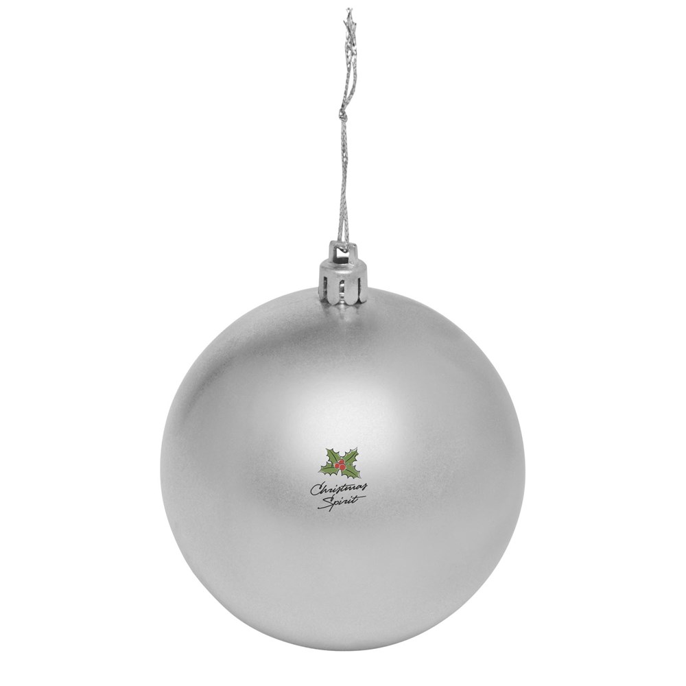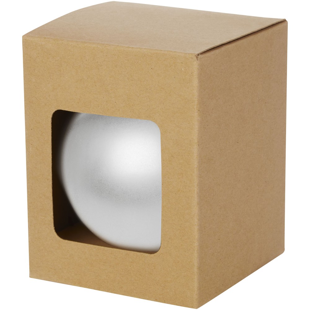Weihnachtskugel mit glänzendem Finish, einem runden Aufhänger und einer 5,5 cm langen Schnur. Individuelle Geschenkbox aus Kraftpapier mit Frontfenster zur Sichtbarkeit der Werbeanbringung.