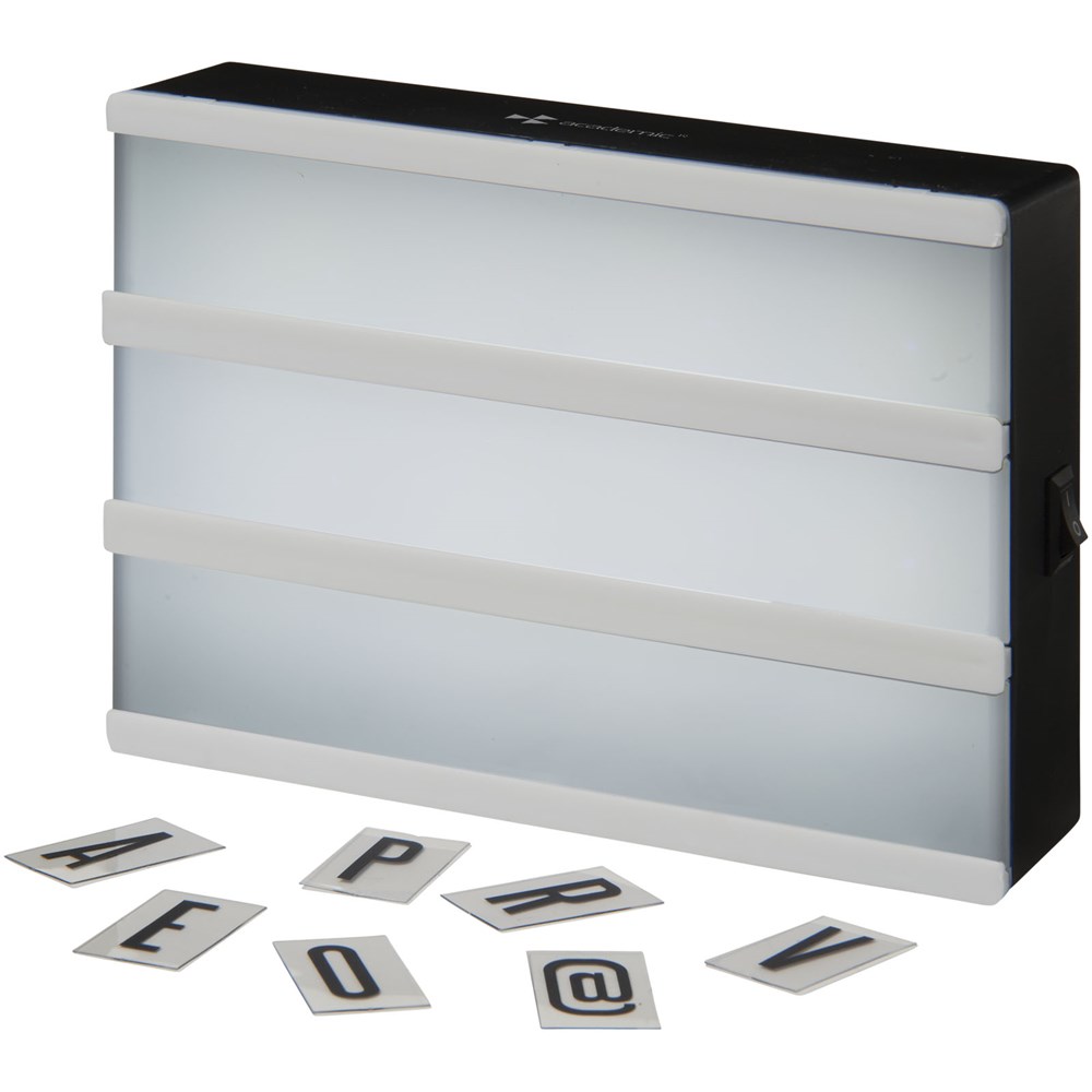 Erstellen Sie Ihre eigene Nachricht mit diesem dekorativen Leuchtkasten. Enthält 60 Buchstaben und Symbole. Ein/Aus Schalter befindet sich auf der Seite des Leuchtkastens. Inkl. 3 x AAA Batterien und weißer Geschenkbox.