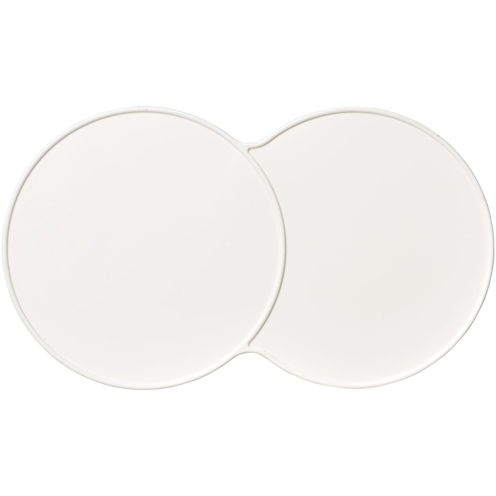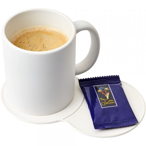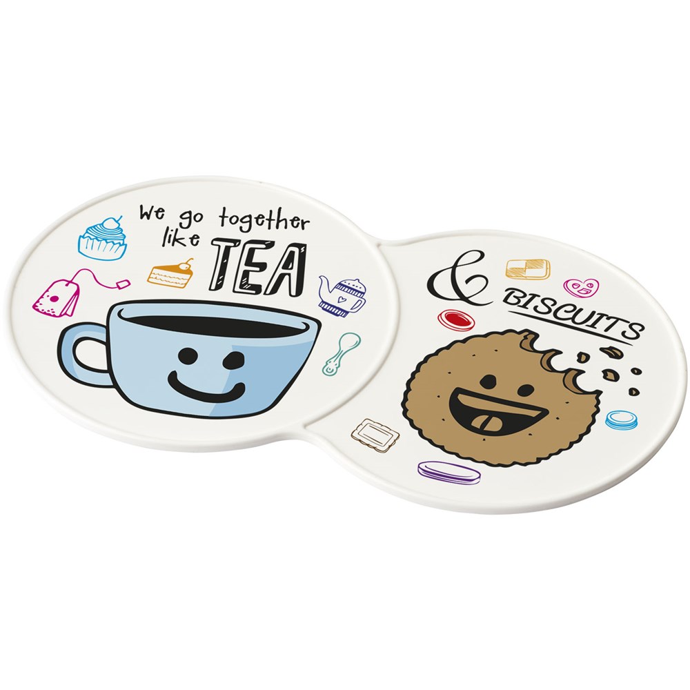 Vergrößerter Untersetzer mit Platz für mehrere Getränke oder eine Kombination aus einem Getränk und einem Keks.