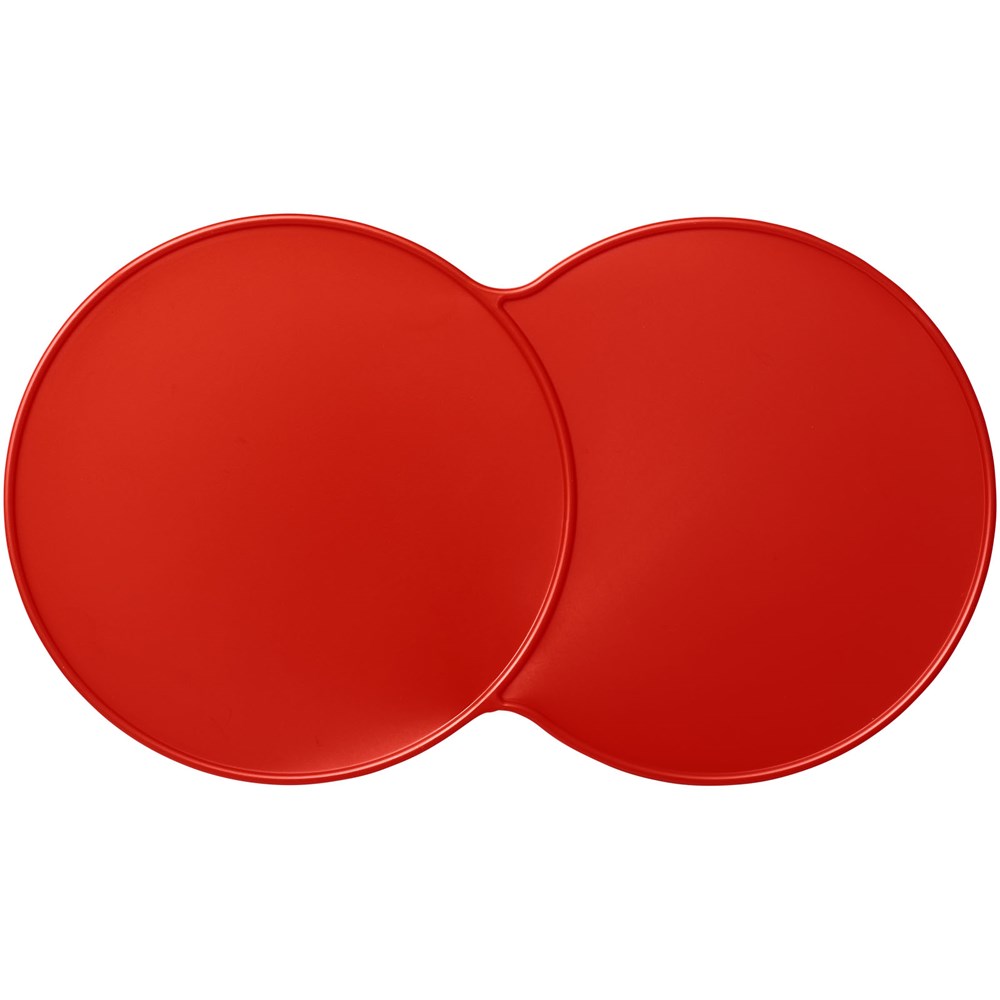 Vergrößerter Untersetzer mit Platz für mehrere Getränke oder eine Kombination aus einem Getränk und einem Keks.