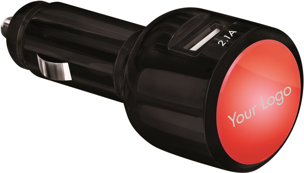 Car Charger schwarz/rot mit 2 USB Ports und Leuchtlogo
