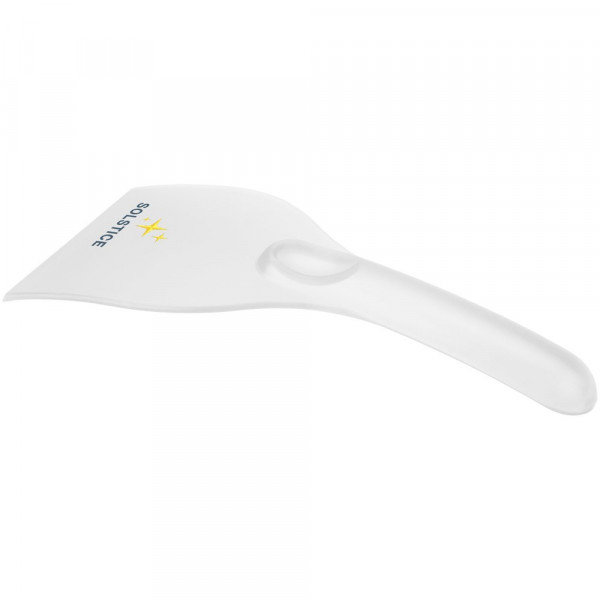Einfacher Windschutzscheibenkratzer mit großer Werbeanbringungsfläche. Der starke Griff sorgt dafür, dass genügend Druck ausgeübt werden kann, um das gesamte Eis von der Scheibe zu entfernen. Hergestellt in Großbritannien aus recyceltem Kunststoff.