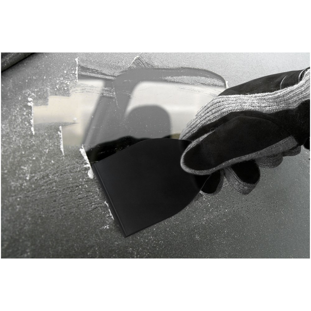 Einfacher Windschutzscheibenkratzer mit großer Werbeanbringungsfläche. Der starke Griff sorgt dafür, dass genügend Druck ausgeübt werden kann, um das gesamte Eis von der Scheibe zu entfernen. Hergestellt in Großbritannien aus recyceltem Kunststoff.