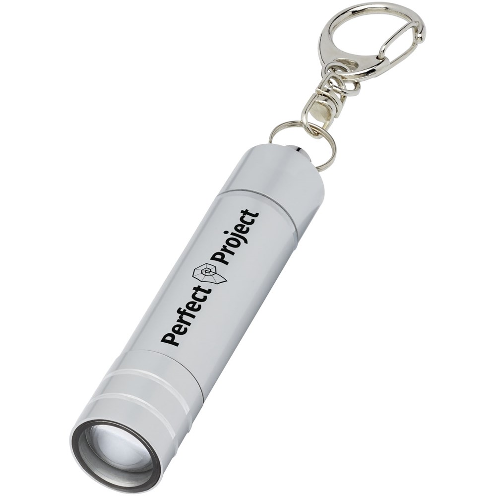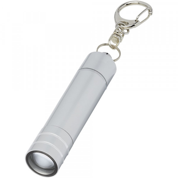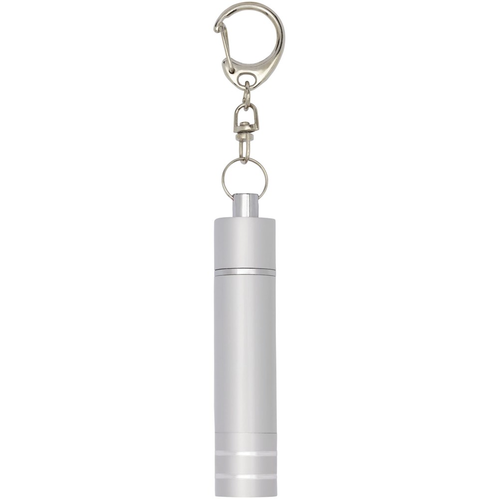 Handliches LED Licht mit Schlüsselanhänger, mit Taschenlampe und Licht. Die weiße LED Lampe erzeugt 5 Lumen und wird mit Druckschalter betätigt. Für noch mehr Licht ziehen Sie den Schaft heraus. Wird mit einem Karabinerclip aus Metall zur einfachen Befestigung an einer Tasche oder einem Schlüsselbund geliefert. Mit Batterien.